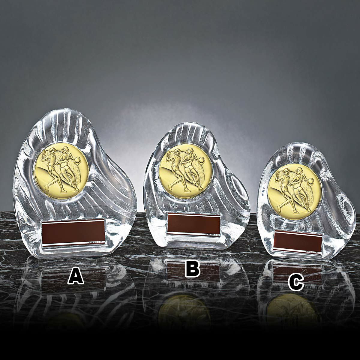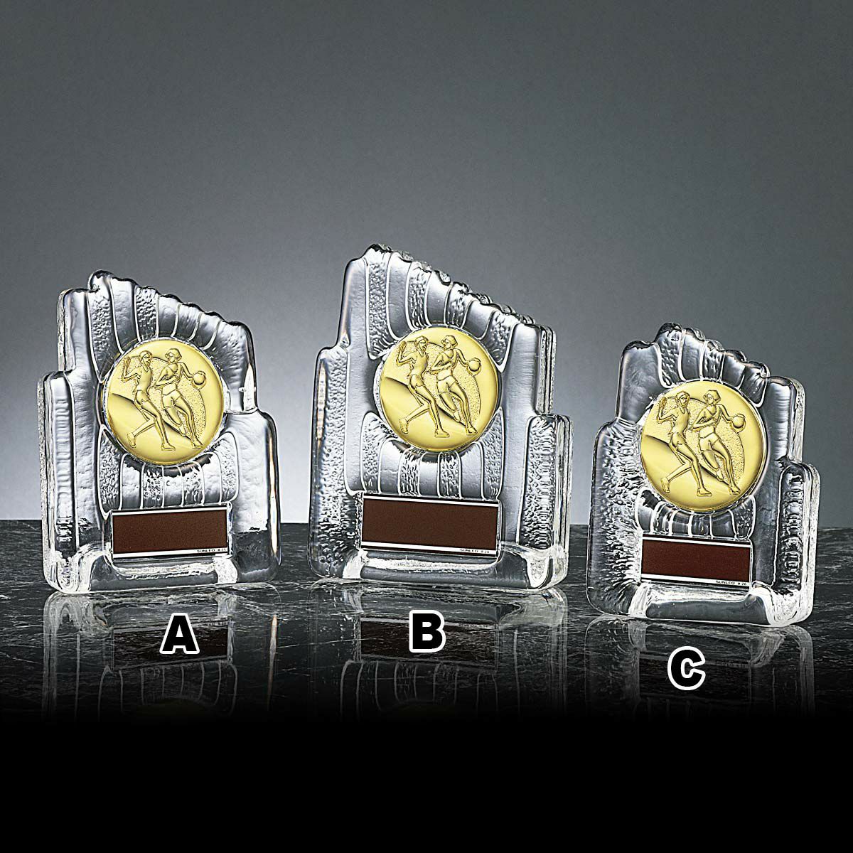- 透明度の高い光学ガラス製ブロンズトロフィー・デザイン性に優れ重量感がありスポーツ界での功績を称える記念品としても選ばれています