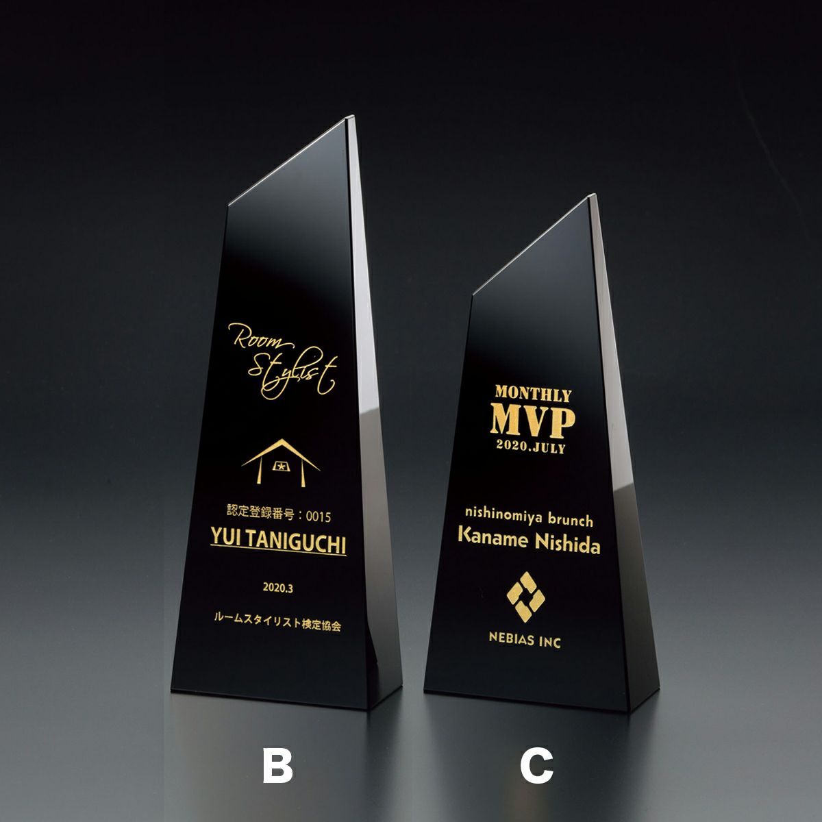 日本伝統工芸「金箔・プラチナ箔」と深みのある光沢を放つピアノフィニッシュ仕上げ「漆黒」との組み合わせは品格がありアワードをより一層華やかに演出いたします。力強く美しい「ブラック・黒」の記念品を是非お選びください。