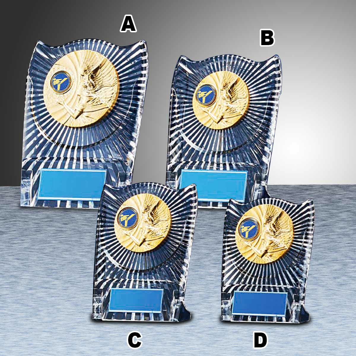 - 9サイズでラインナップ!上部人形は躍動感ある新デザイン!ブルー&ゴールドの組み合わせが華やかな空手トロフィーです