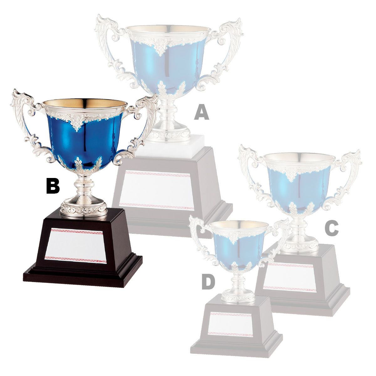 デザインが豊富で、ポイントカラーにもなるレッド、ブルー、グリーンといったカラーを取り入れたデザインや、金・銀メッキによる仕上げなどが施されたカップは、表彰シーンにふさわしい華やかさがあります。