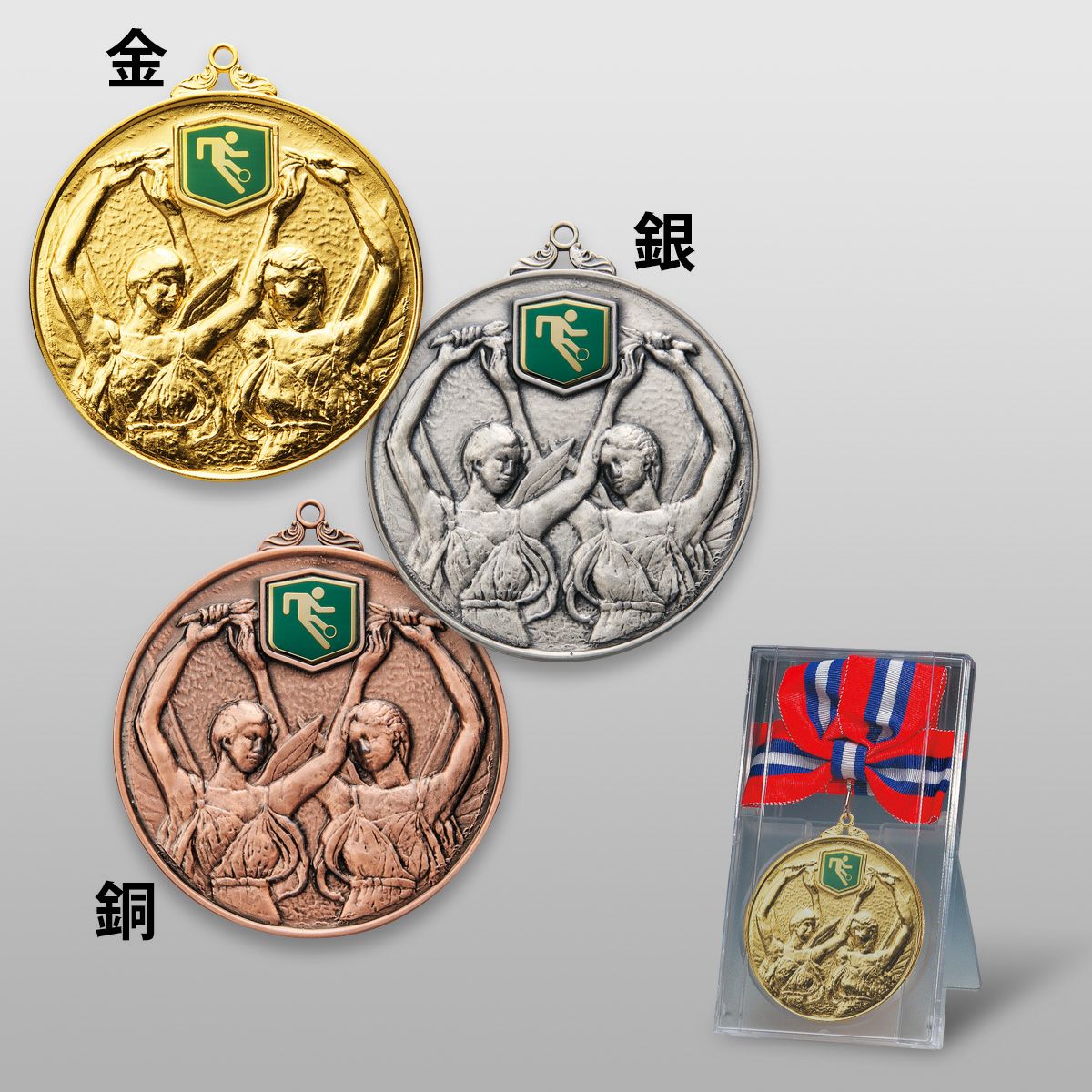定番人気の金メッキ・銀メッキ・銅ブロンズが選べる金属製メダルのデザインは、競技に関連するモチーフや汎用性の高い女神やクラウン、鷲などがあります。約200種類以上からお選びいただけるレリーフ(取替競技種目)を取り付けるタイプのメダルもございます。