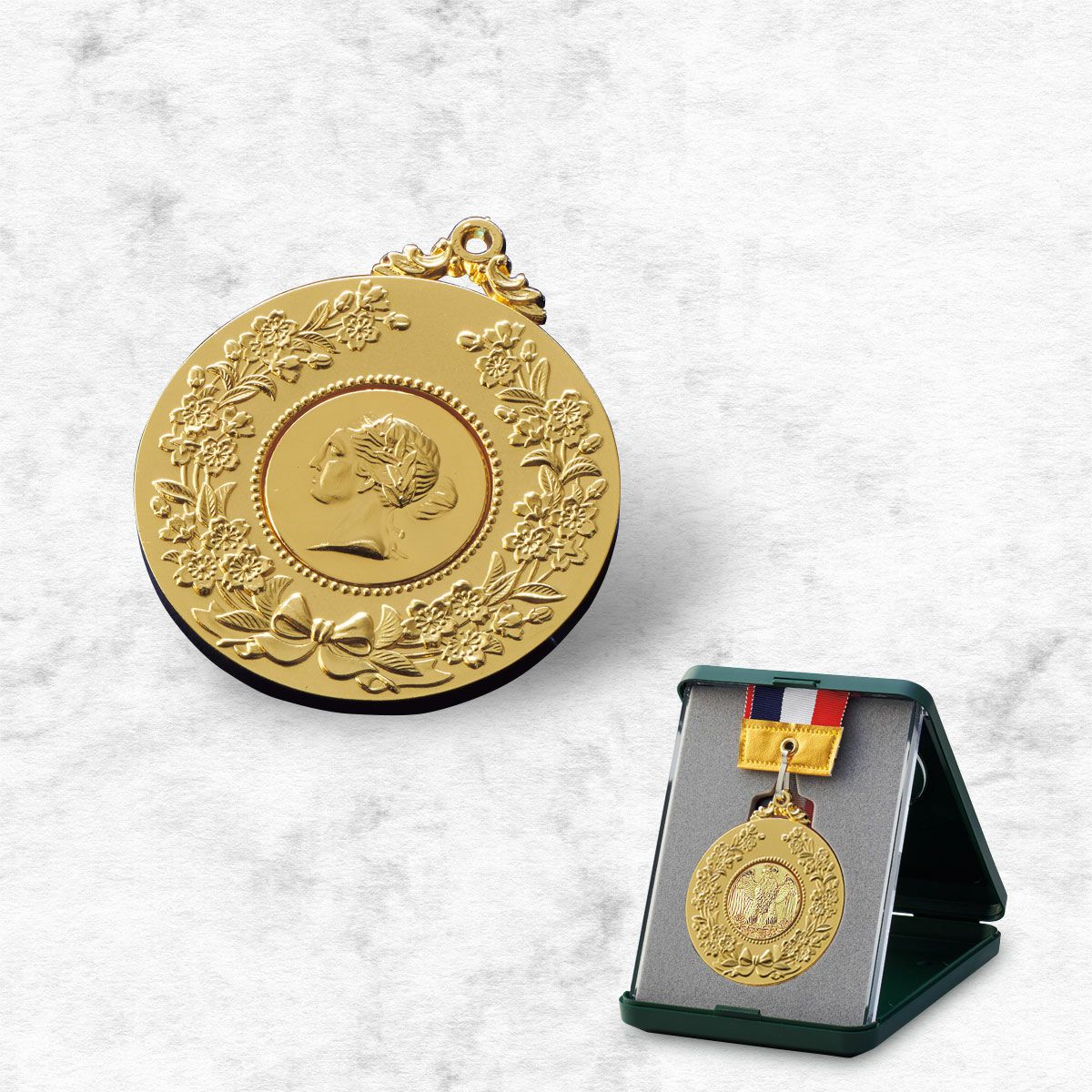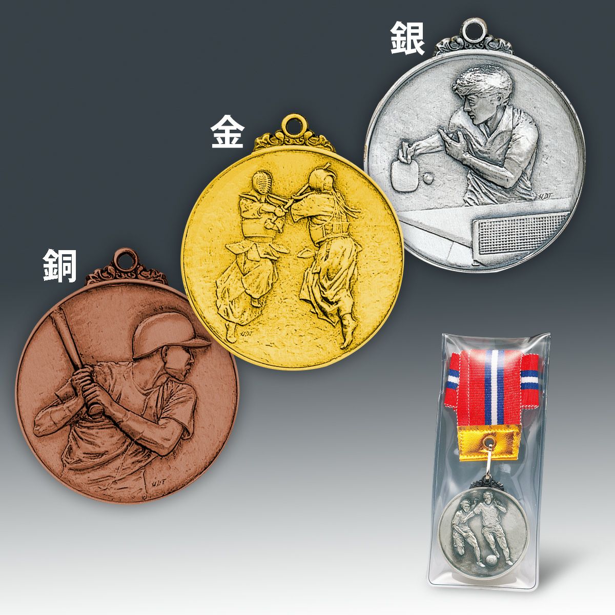 多数のデザインから金銀銅のメダルをお選びいただけます。