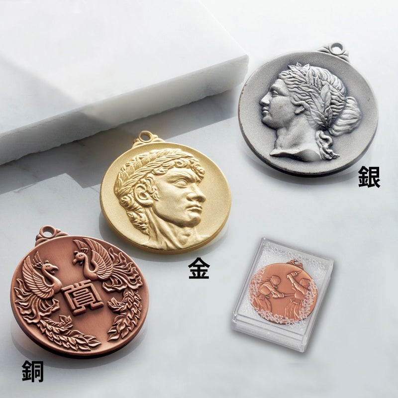 真鍮製・首掛けリボンなし・プラケース入・直径40mm・厚さ3mm・重さ約30g