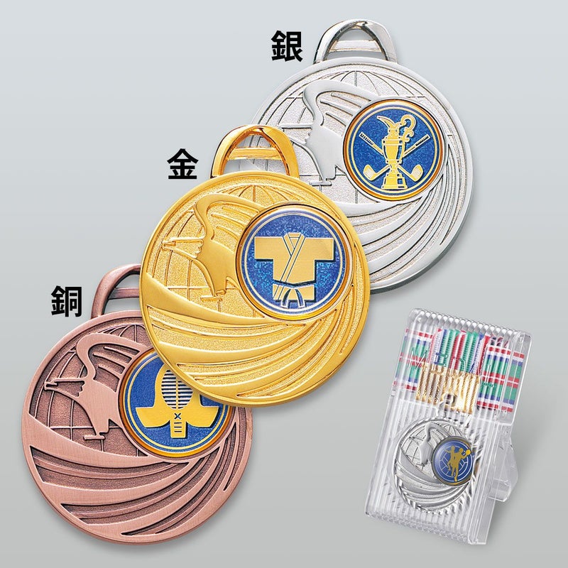 亜鉛ダイキャスト製・本体:直径45mm・直径22mmのアクリルマーク付・首掛けリボン付ケース入り