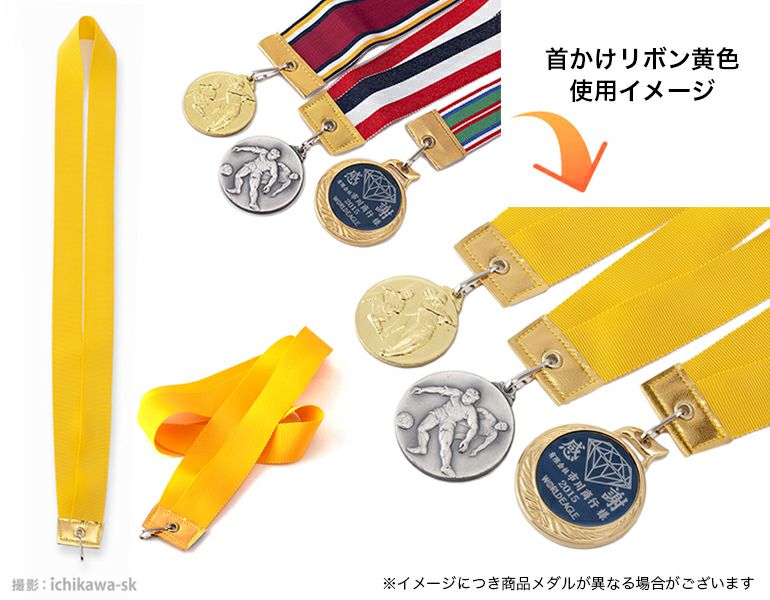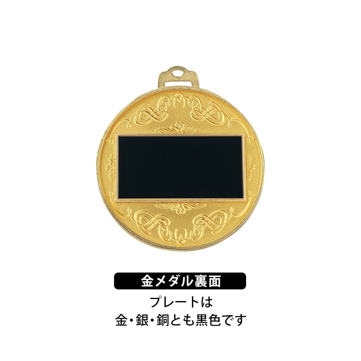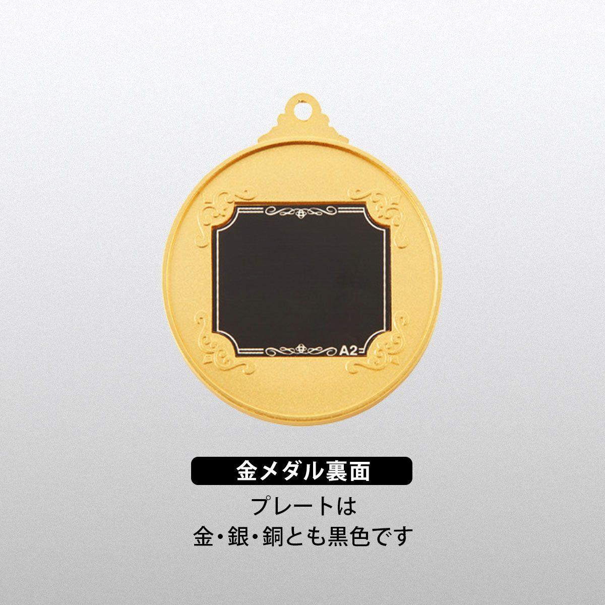 重量感あり、多数の競技種目から選べる人気のMサイズメダル。金・銀・銅の3色を揃え、首かけリボンや箱ケース等で選べるメダルもあり、メダルの中でも種類が豊富で、サッカー・野球など大会参加者の多い競技種目、空手や柔道のクラス分けや年齢分け表彰のある場合にもMサイズメダルをお選びいただいております。 裏面のプレートに文字彫刻いたします。