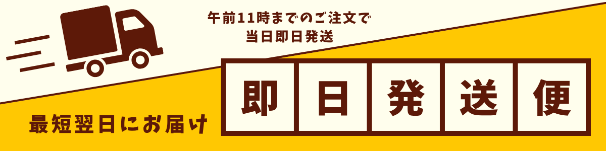 - 「即日発送」対象商品以外の商品と一緒にご購入いただいた場合、すべての商品が「即日発送適用外」となります。