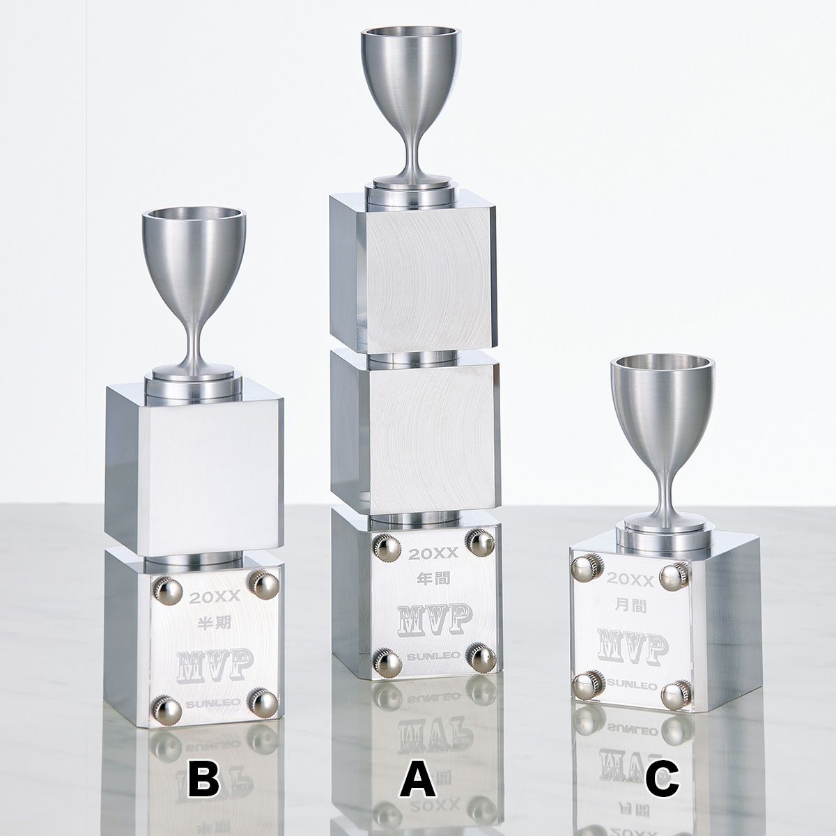 - お客様のロゴや表彰メッセージなどを、カップ本体に直接加工できる特別な記念カップです。重厚感と高級感を備え、持ち回り優勝カップなどにも選ばれています。
