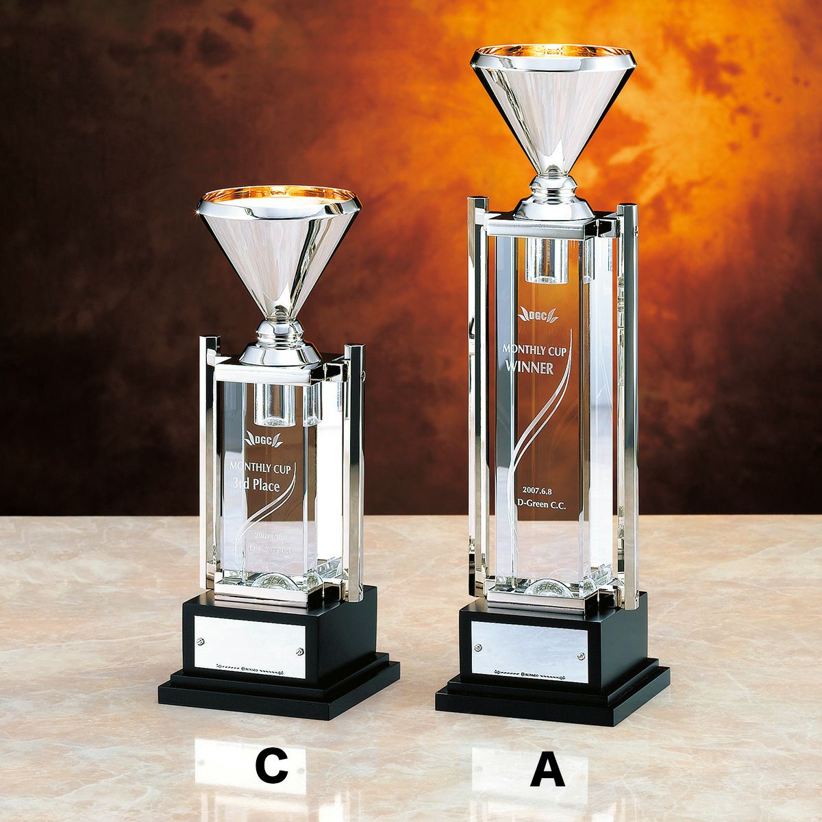 - 真鍮と光学ガラスを組み合わせたスタイリッシュな表彰カップ・ゴルフ競技にも選ばれています