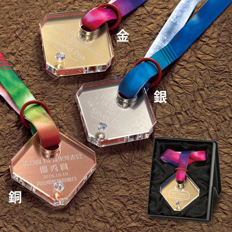 大粒のダイヤモンド(ジルコニア)が埋めこまれた価値あるメダル。