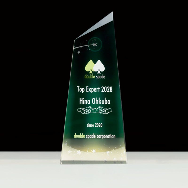 知性、創造性の光ともいわれるオーロラの、天上から降り注ぐように励起するエナジーをイメージしたトロフィーです。