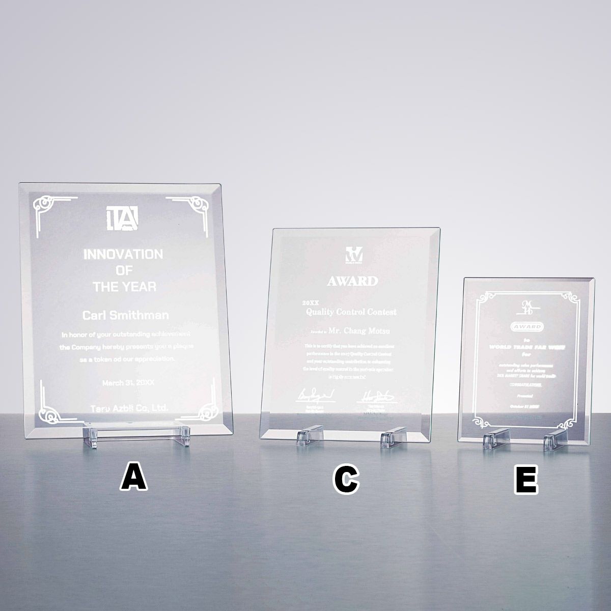 透明感のあるガラスを使用したシンプルかつ美しい点が魅力の表彰楯を取り揃えております。