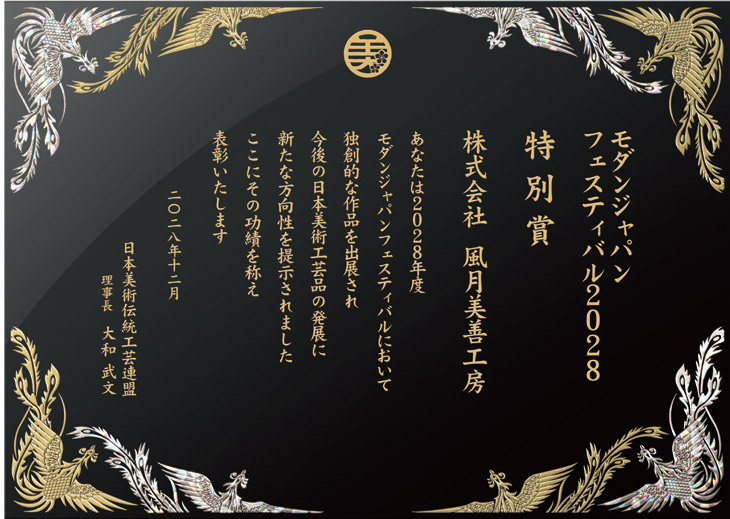 圧着材+メラミン化粧板/蒔Vプレート(近代蒔絵仕様)/桐柄化粧箱入り