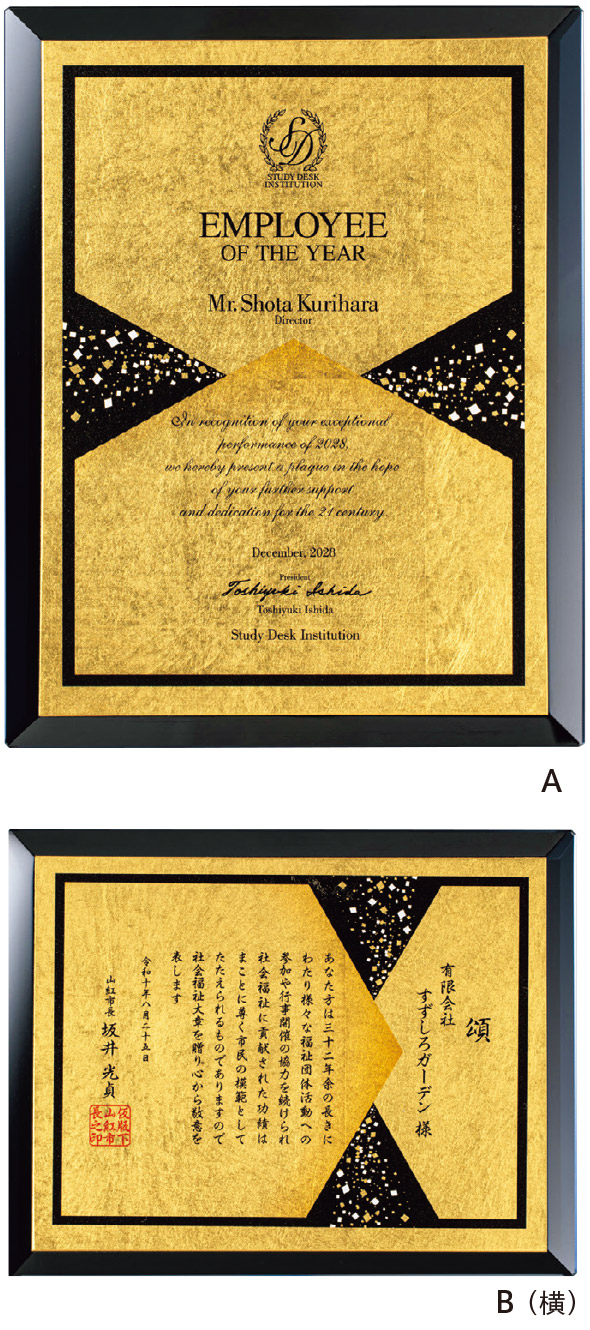 箔Vブラックミラー楯 デザイン一覧(縦型・横型)