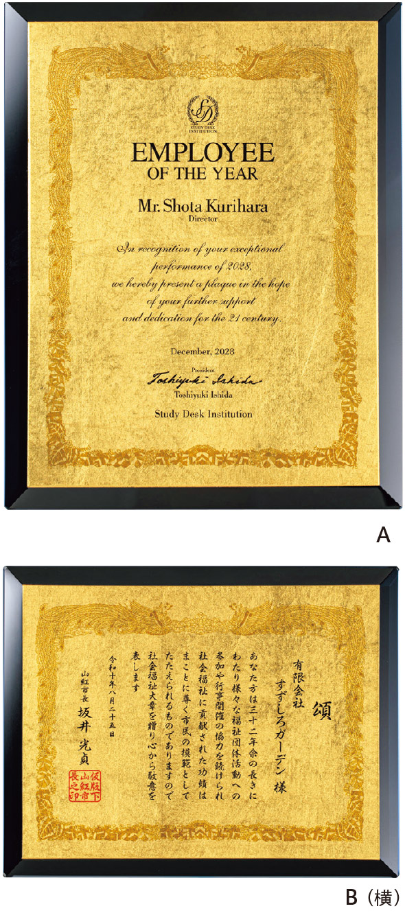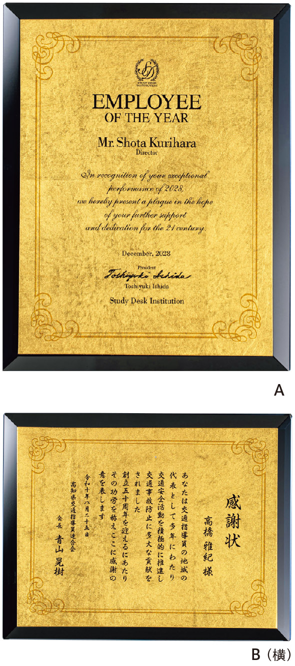 【箔Vブラックミラー楯(金沢本金箔仕様)】