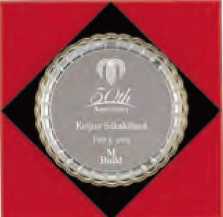 デザインはモダンでありながら、伝統色によって和の雰囲気がたっぷり。海外でもよろこばれる楯です。