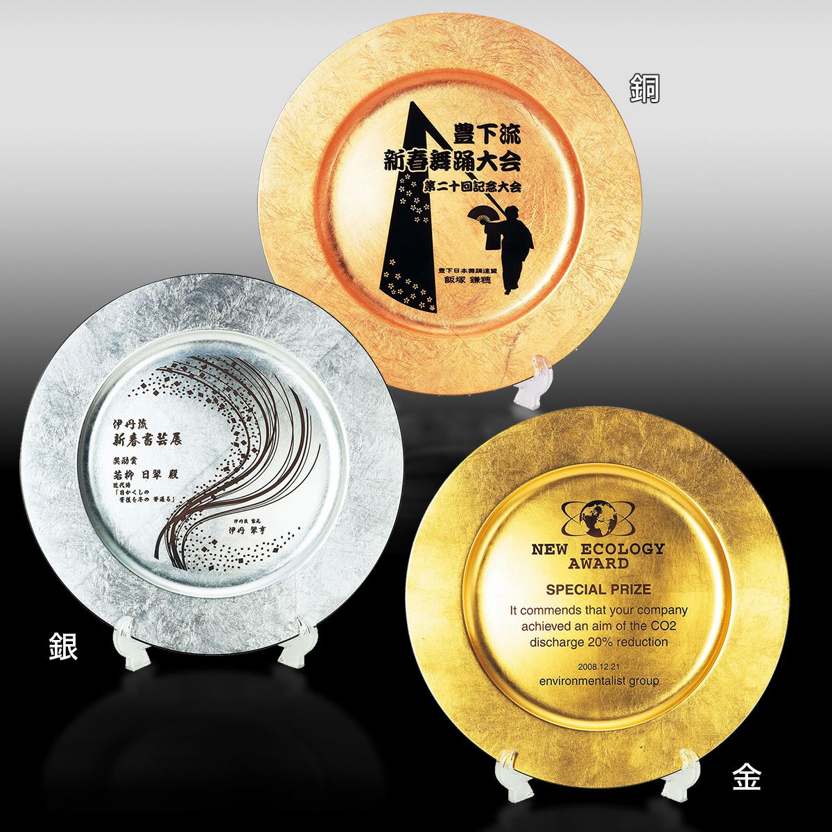 真鍮製、金属製(メタル)の楯は独特の風合いを持ちます。クールで洗練されたデザインは様々なアワードシーンで人気の表彰アイテムです。皿形表彰楯(シャーレ)も人気です。木製や天然石とは違う表彰楯をお探しの方は一度金属製楯をご覧ください。