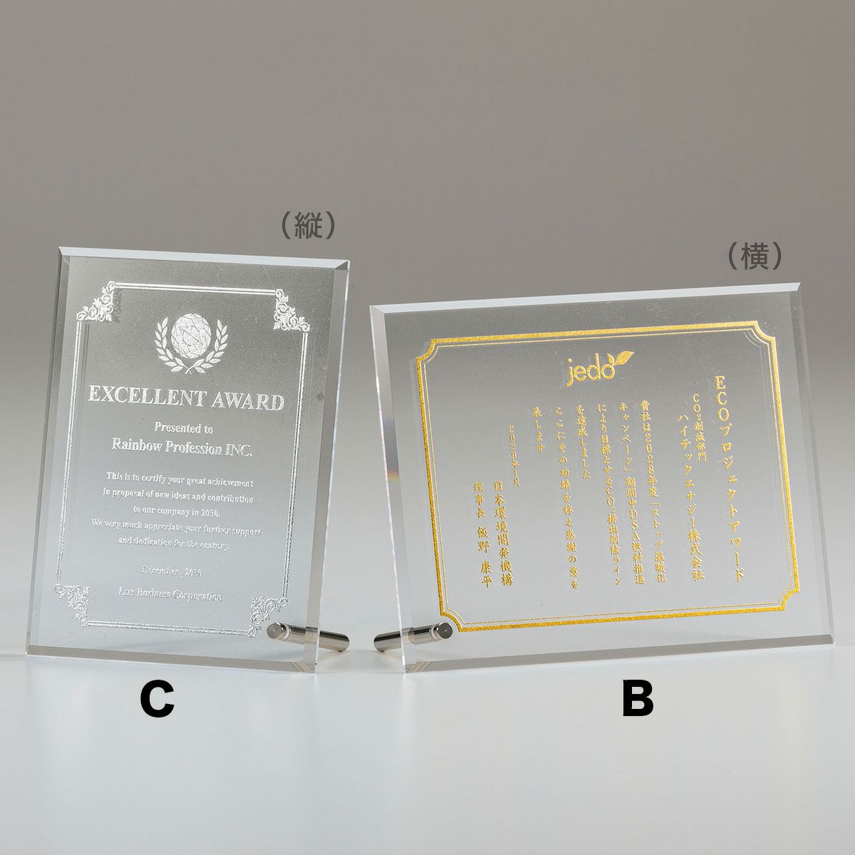 際立つ透明感で、サイズは小さめですが書棚にも飾れる一際目を引く表彰楯。受賞の重さと感激を手に取るたびに実感して頂ける人気のアワードアイテムです。