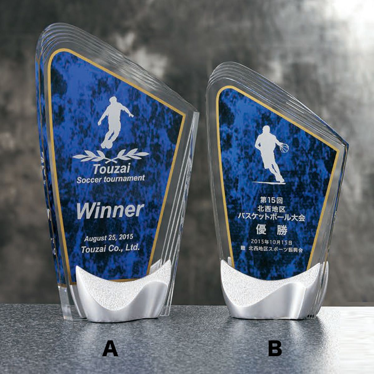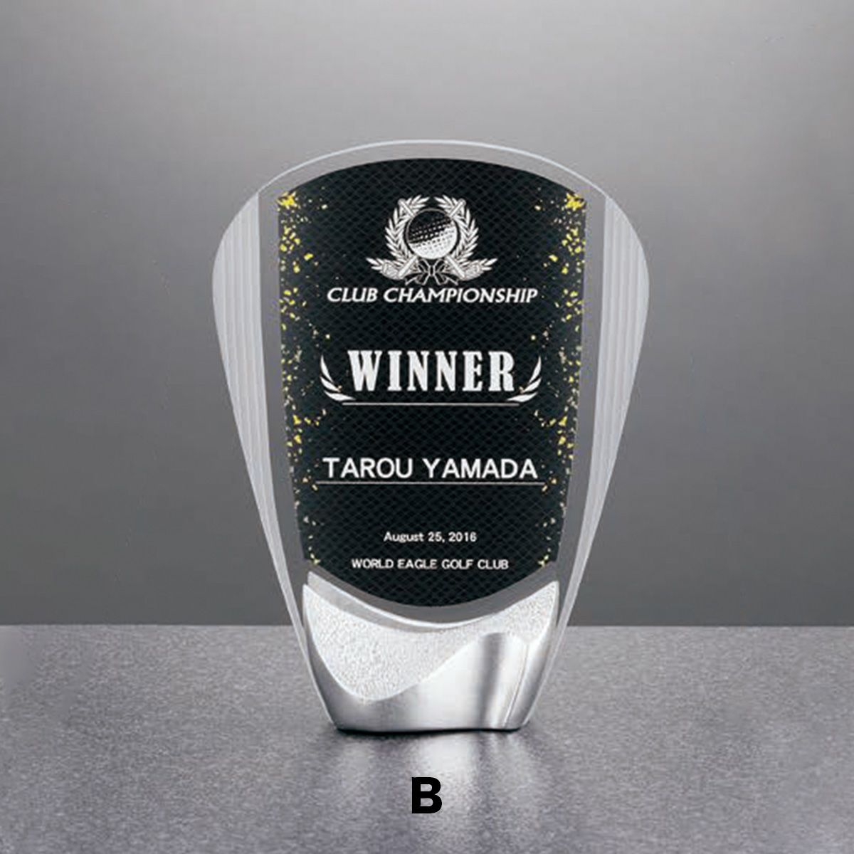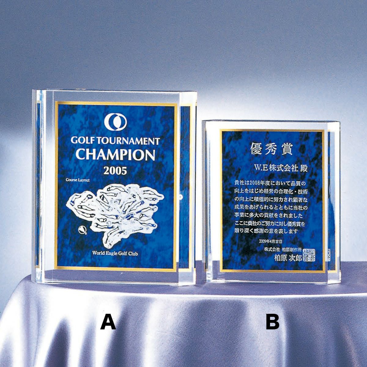比較的安価で繊細なデザインも表現出来ます。シンプルな洗練されたデザインで、ロゴマークや文字が引き立つ記念楯・表彰楯です。ガラスのような透明感を持ち合わせ割れにくい事から屋外スポーツ大会での表彰や記念品としてご利用いただいております。