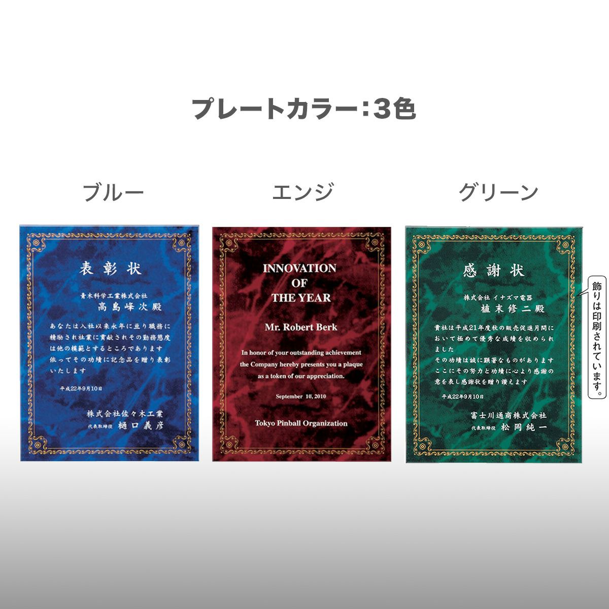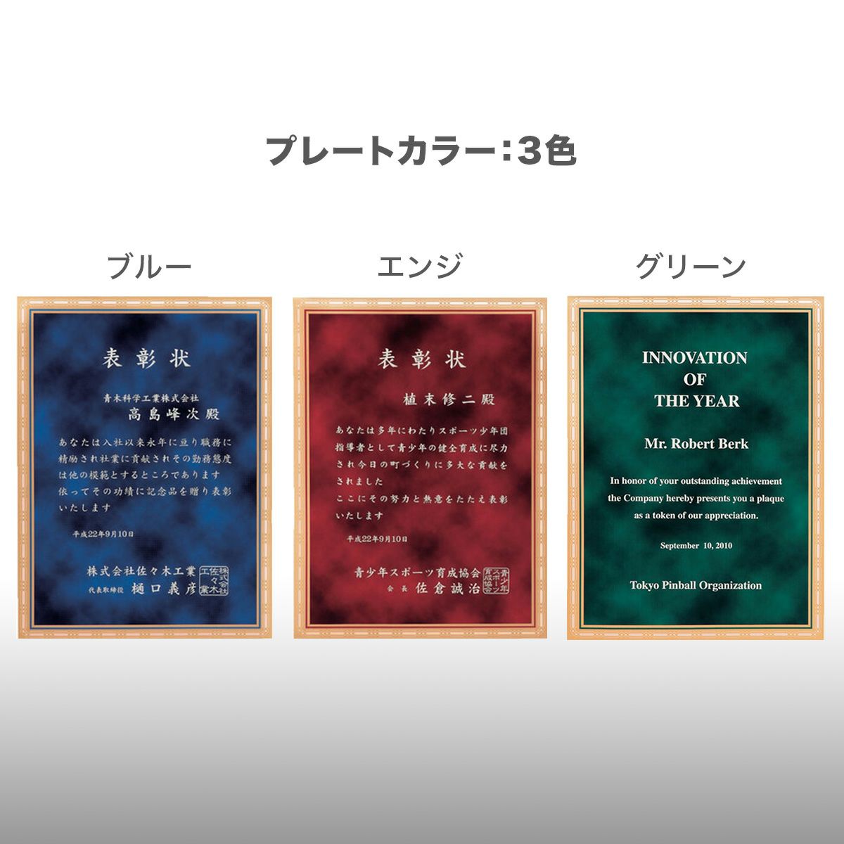 学術や文化系の表彰、営業成績や永年勤続などの社内表彰、認定証や感謝状まで幅広く活用されています。個人への表彰はもちろん、近年はチーム表彰や店舗賞など、組織単位で贈るケースも増えています。