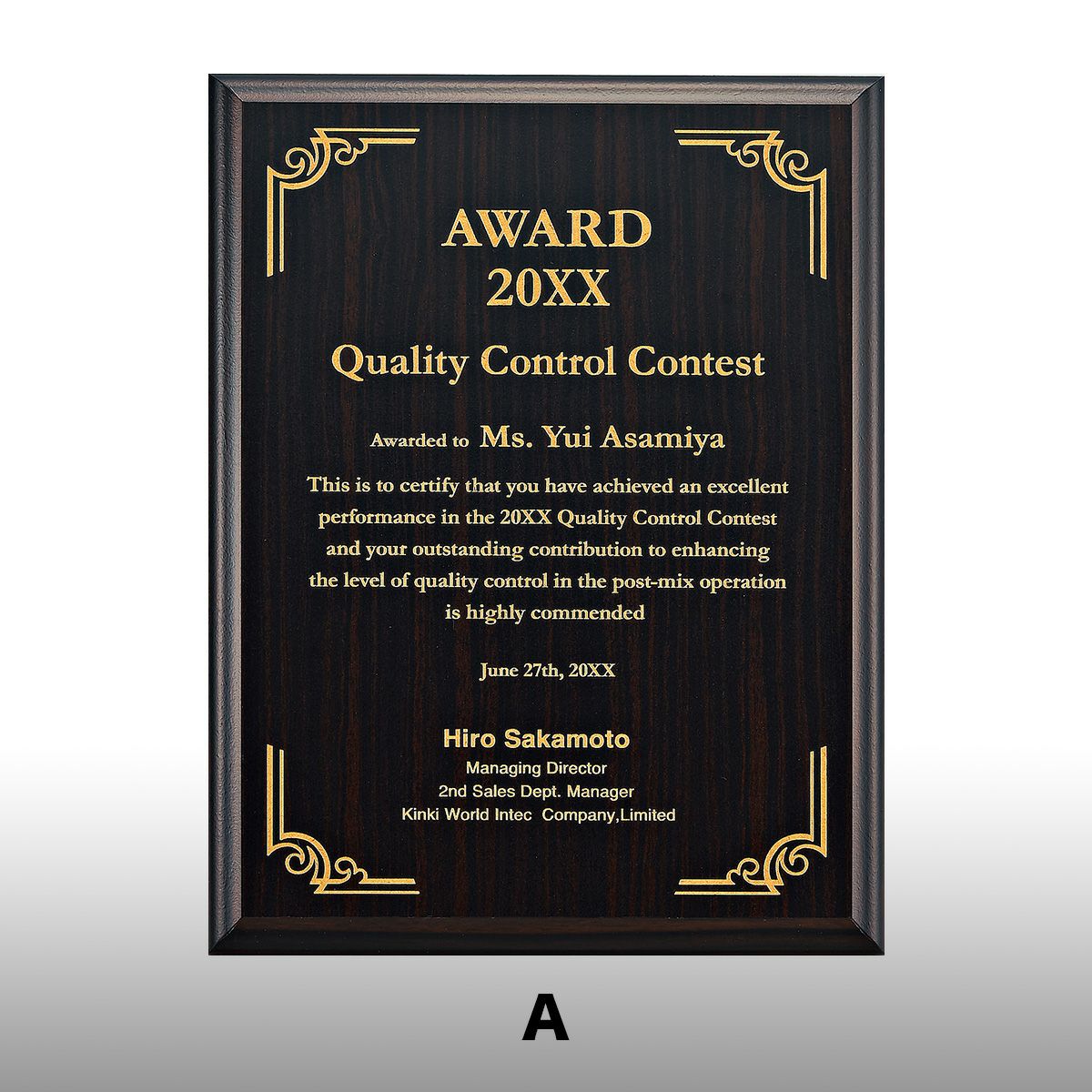 【セミオーダー・箔調・デジタル箔楯】表彰楯・記念楯