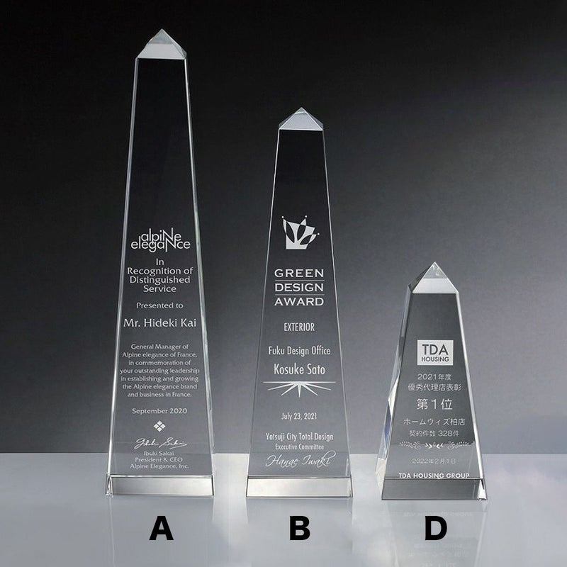 古代エジプトやヨーロッパの街で見られる記念碑を模した重厚感あるトロフィーです。