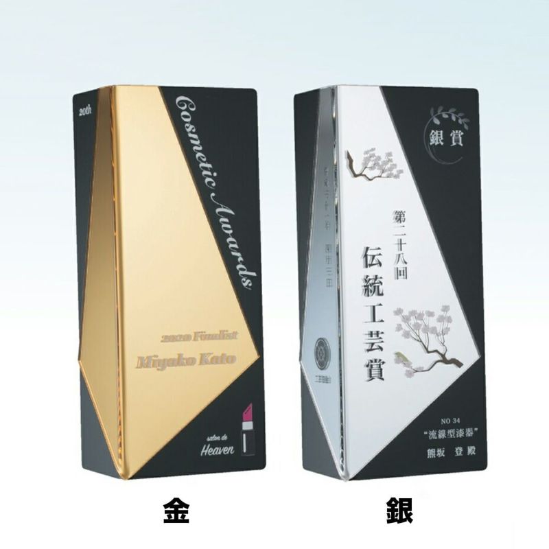 アクリルミラー板に曲げ加工を施す事で表彰製品の新たな可能性を追求しました。