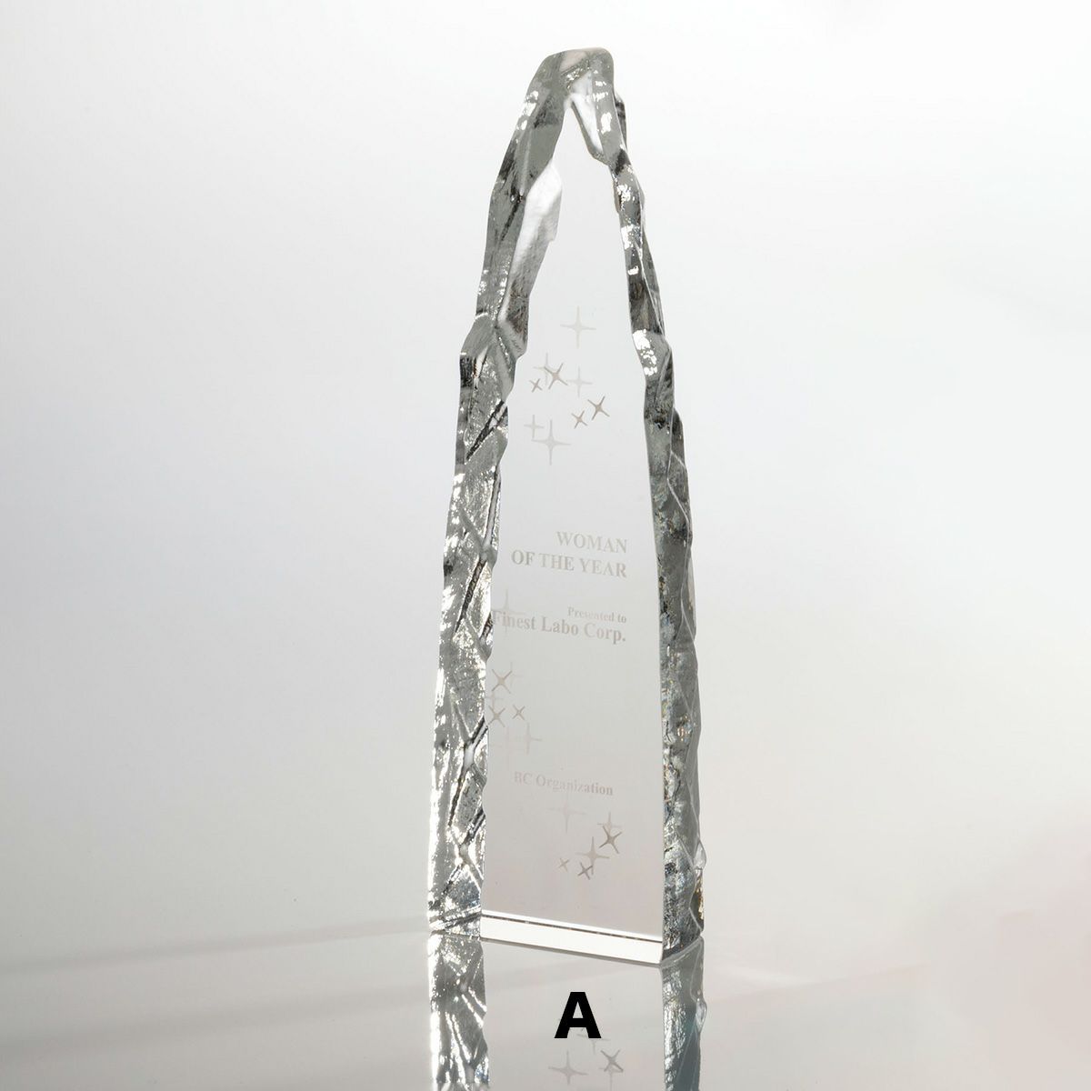 芸能界や国際的なアワードで利用される事が多いガラス製セミオーダートロフィーは、豪華なカットや、シンプルにカットされたものなど様々なカットにより特有の美しい輝きでアワードやプライズとして一際人気の高い記念品となっています。