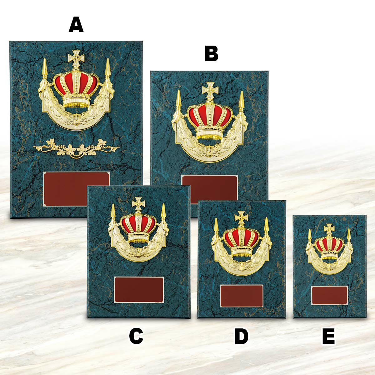 1位・優勝のイメージのレリーフ「王冠」のデザインも、メーカーにより少しずつ異なります。