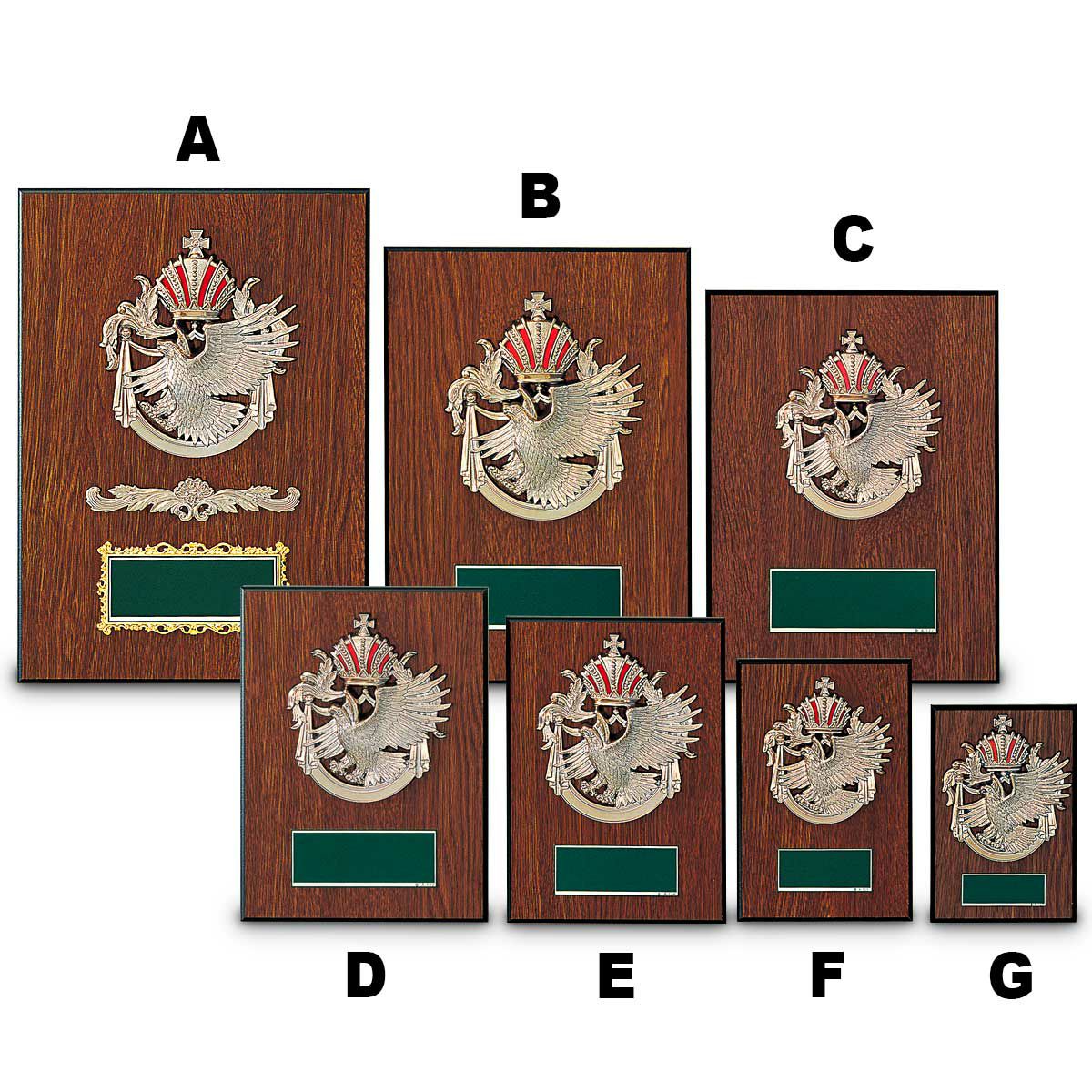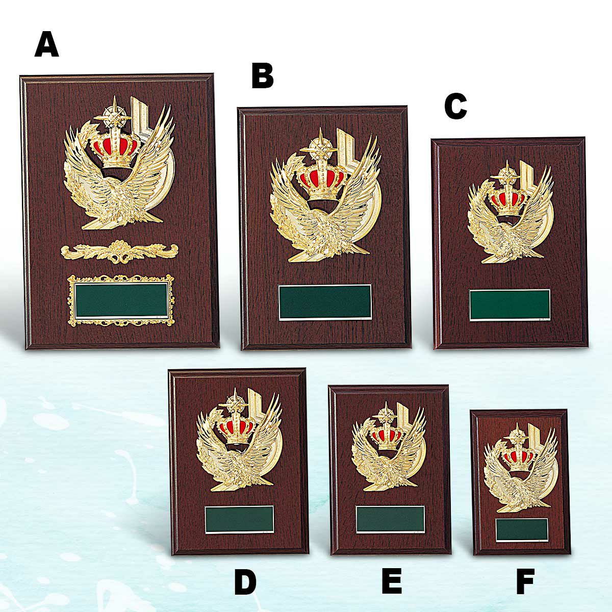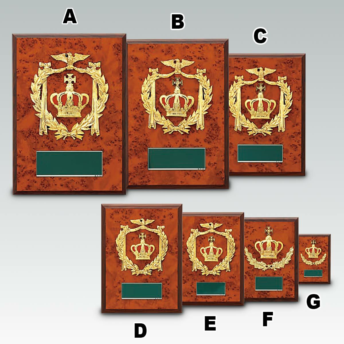 - 「鷲」を中心に王冠や女神のレリーフをあしらった、重厚感ある木製楯です。天然木圧縮材を使用し、温かみと存在感のある仕上がりが特徴です。