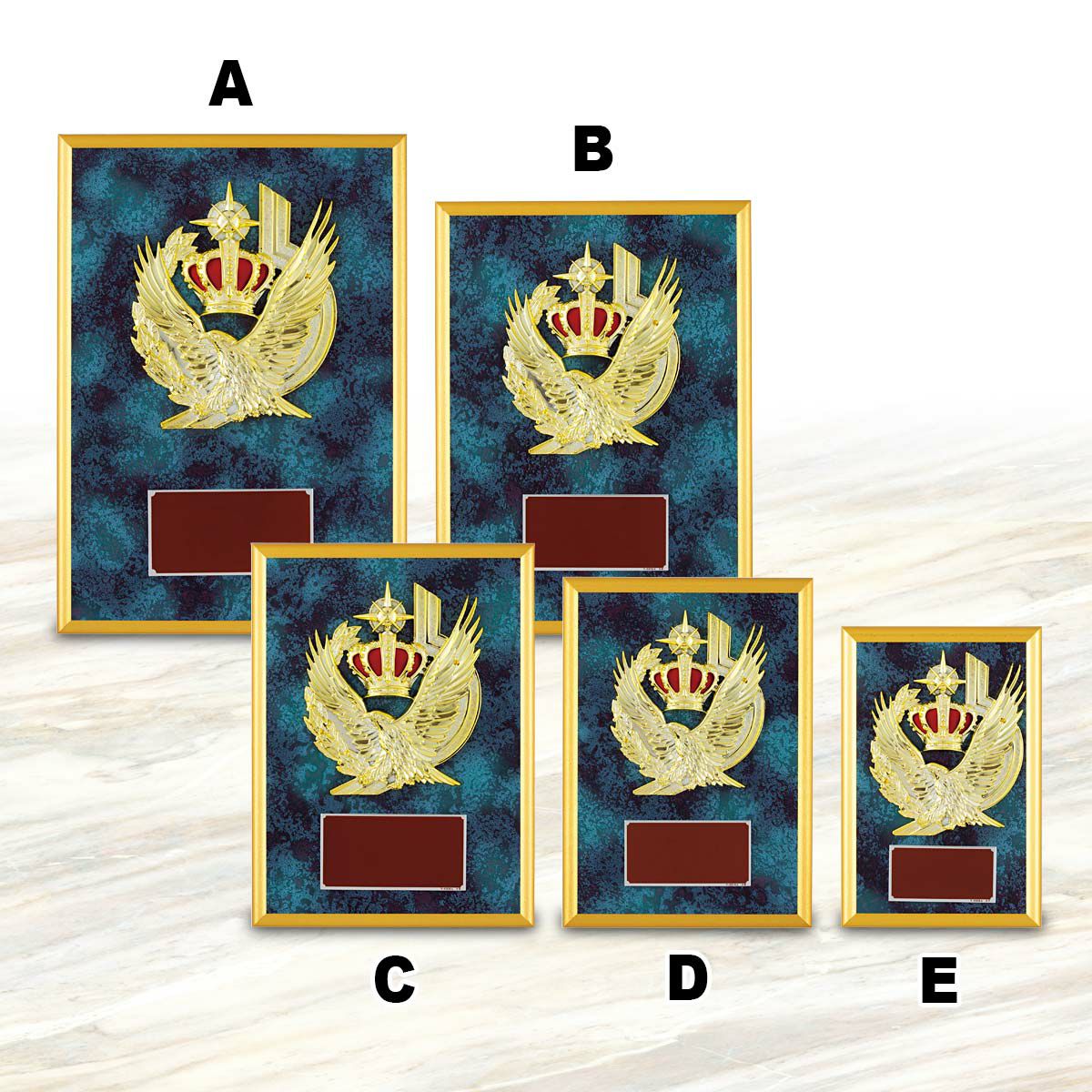 楯板の素材には天然木圧縮材を使用し、天然石や美しい木目を表現しています。楯のデザインに合わせた繊細な装飾のあしらいは「鷲」のレリーフを引き立て、重厚感のある記念楯となっております。