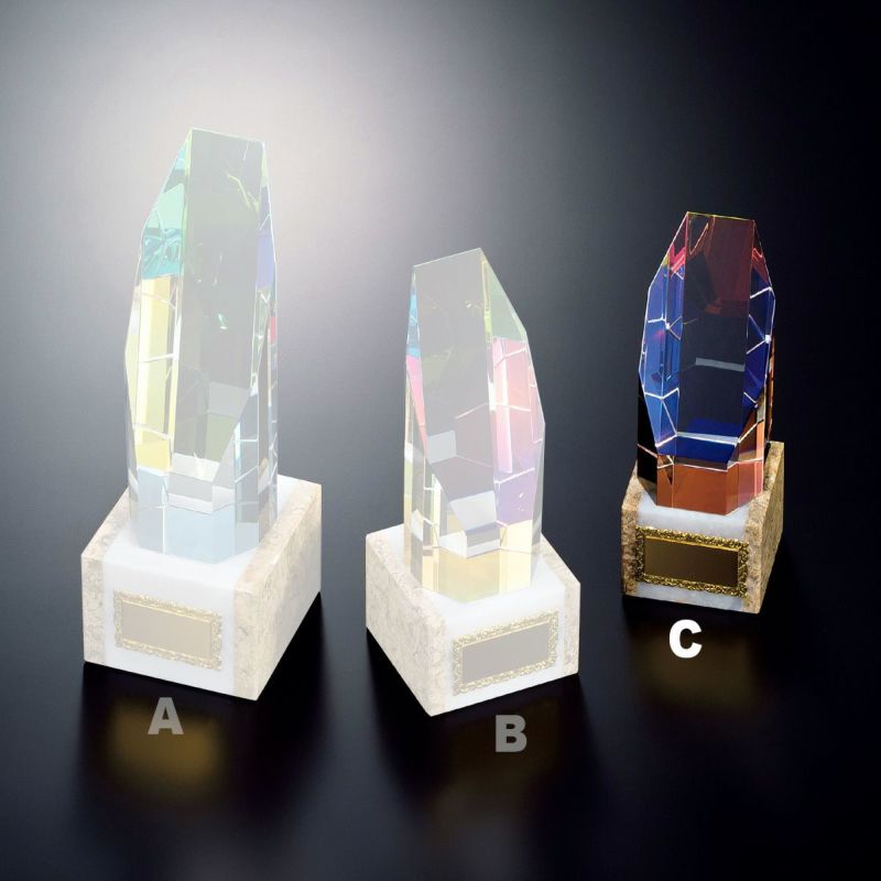 オプティカルガラス製・レインボー加工・コーラル石、大理石台