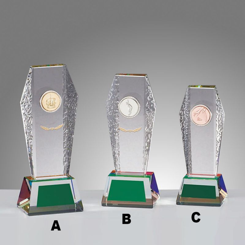 クリスタルガラス製(ホログラム加工(底面)で見る角度により色が変化します)・真鍮製メダル付