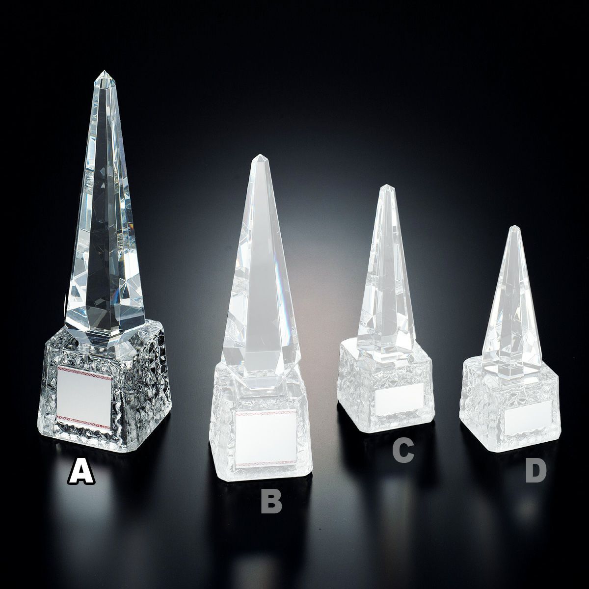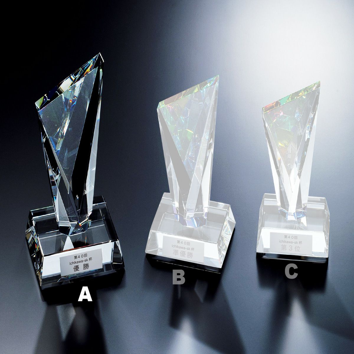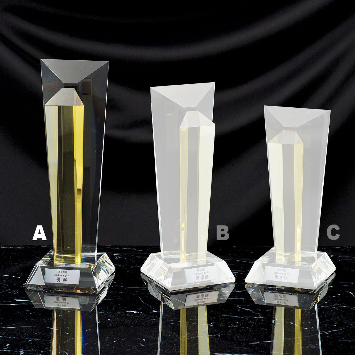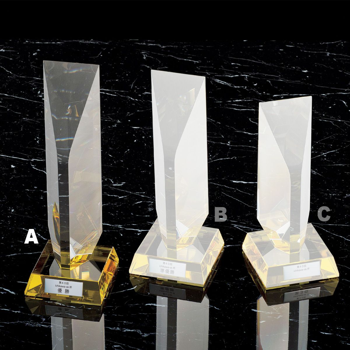 - 際立つ透明感で一際目を引く材質のクリスタル製トロフィー。