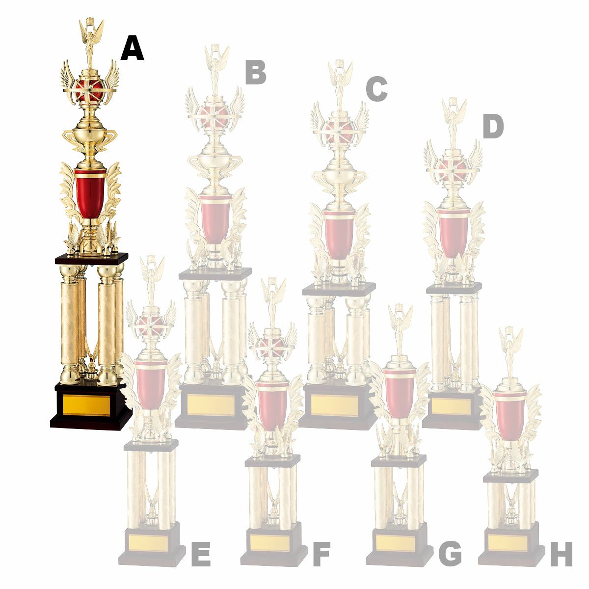 抜群の存在感!4本柱(3本柱)の高さ1m前後のビッグなジャンボトロフィーを集めました。勝利の感動、至福の瞬間をトロフィー手にする人とともに。