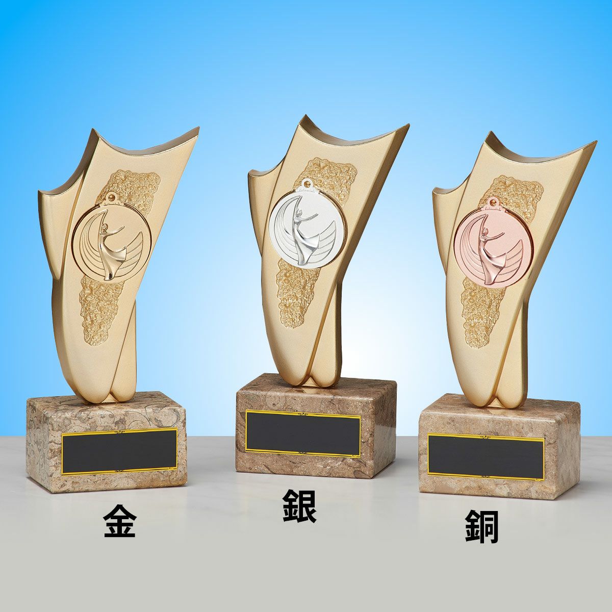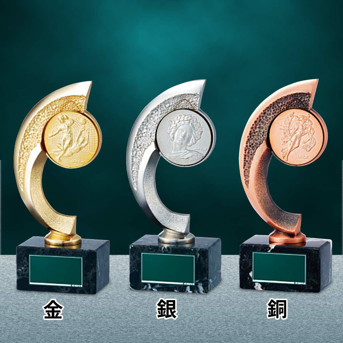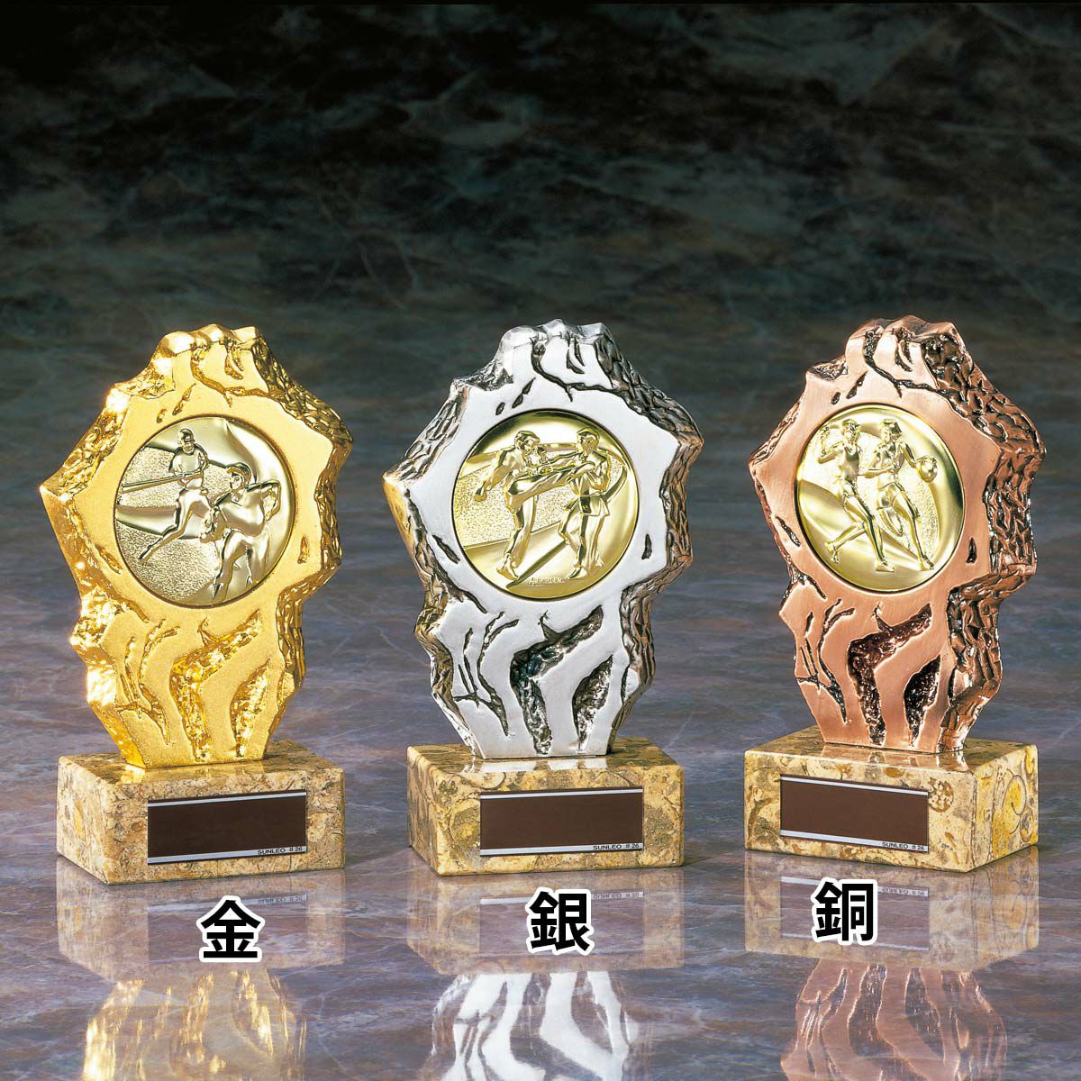 サイズは小さめですが落ち着いた雰囲気のキャスト(金属)製のトロフィーがブロンズトロフィーです。トップに人形が付いているトロフィーにはない形の、女神・鷲・ライオン・星・クラウン・聖火など、様々な形状があり、さらに金・銀・銅メッキがあるものもあります。書棚に入るような小さめのトロフィーを好まれる方にオススメです。