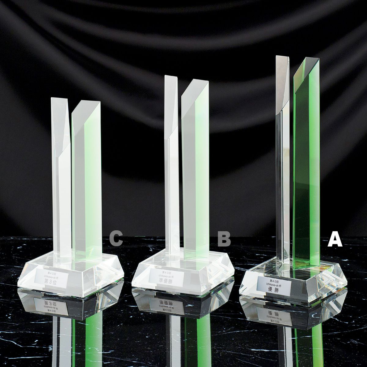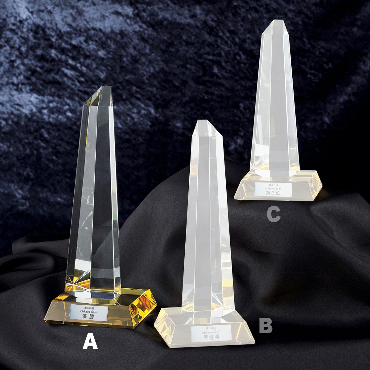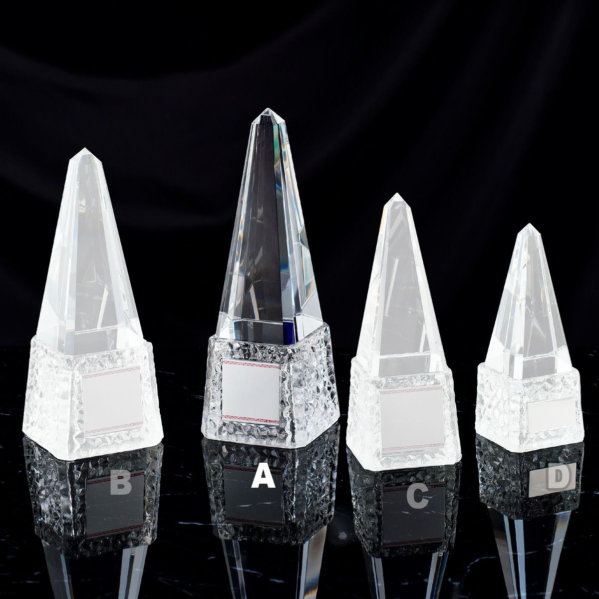 トロフィー全体がクリスタル製のもの天然石とクリスタルとの組み合わせなど、いずれの場合も重量感がありシンプルかつ美しく、人気のトロフィーとなっています。ご要望に合わせサイズや形状も豊富に取り揃えています。