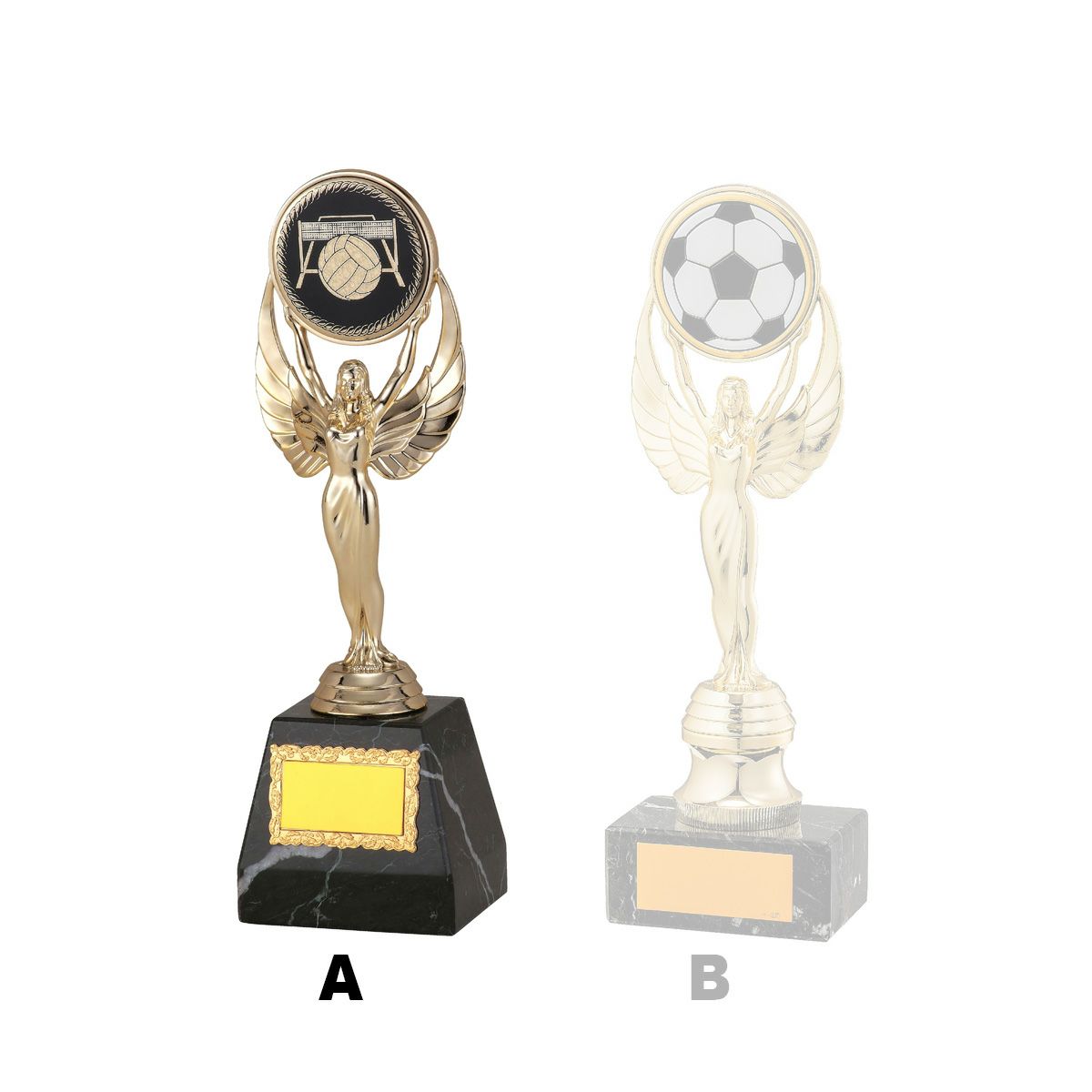 トロフィーは、一般的に「SS女神」を取り付けた状態で、台座の下から人形の先までの高さを表示しております。 お選びになる人形により、多少の高さの違いがありますがご了承下さい。