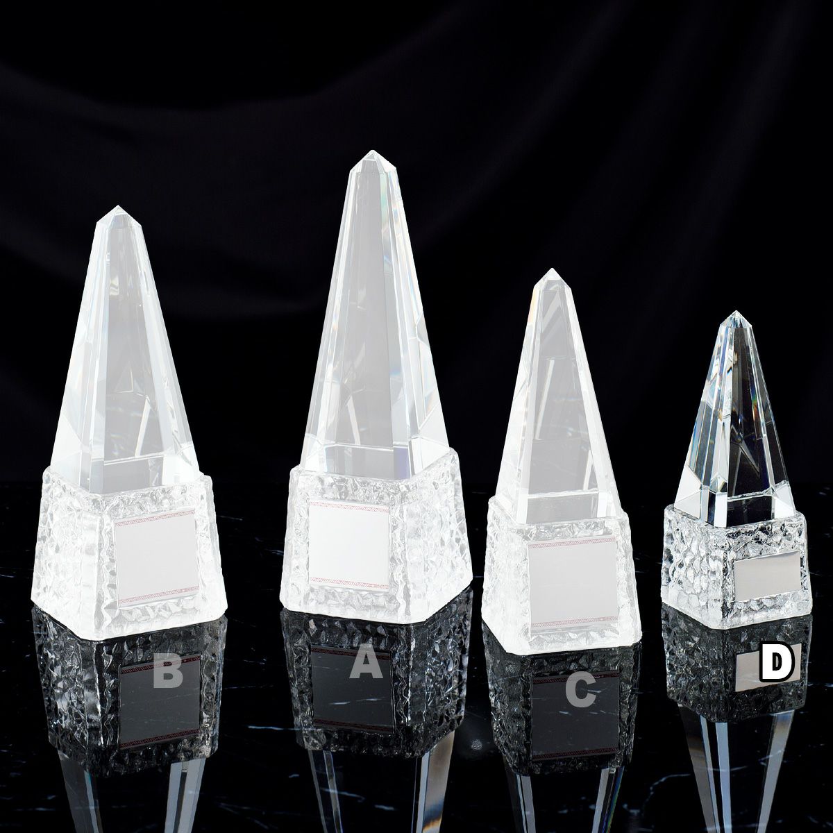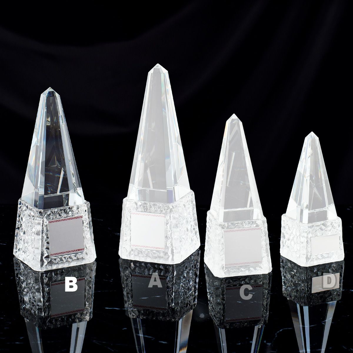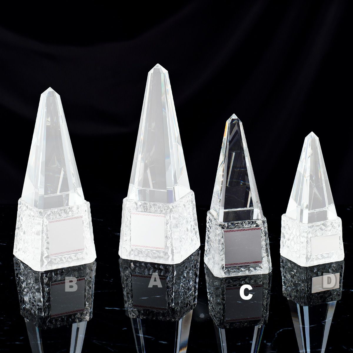 トロフィー全体がクリスタル製のもの天然石とクリスタルとの組み合わせなど、いずれの場合も重量感がありシンプルかつ美しく、人気のトロフィーとなっています。ご要望に合わせサイズや形状も豊富に取り揃えています。