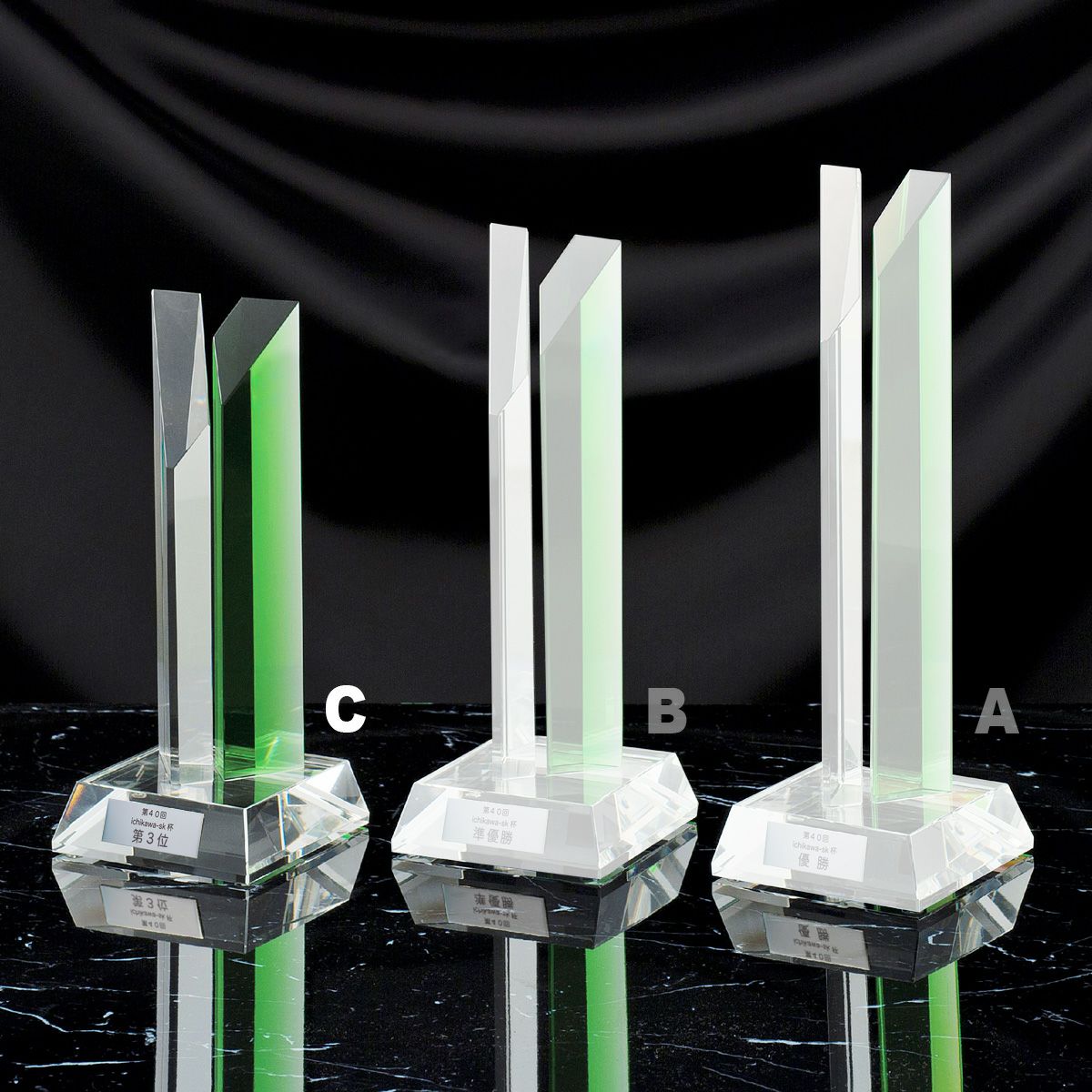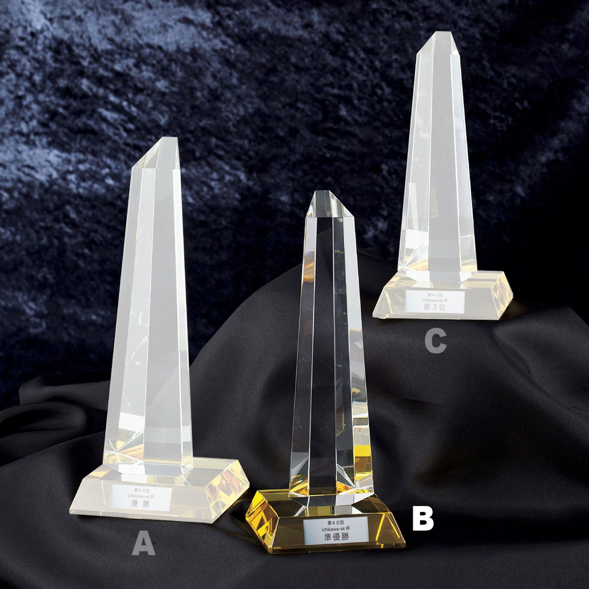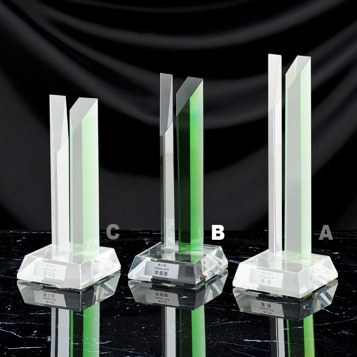トロフィー全体がクリスタル製のもの天然石とクリスタルとの組み合わせなど、いずれの場合も重量感がありシンプルかつ美しく、人気のトロフィーとなっています。ご要望に合わせサイズや形状も豊富に取り揃えています。