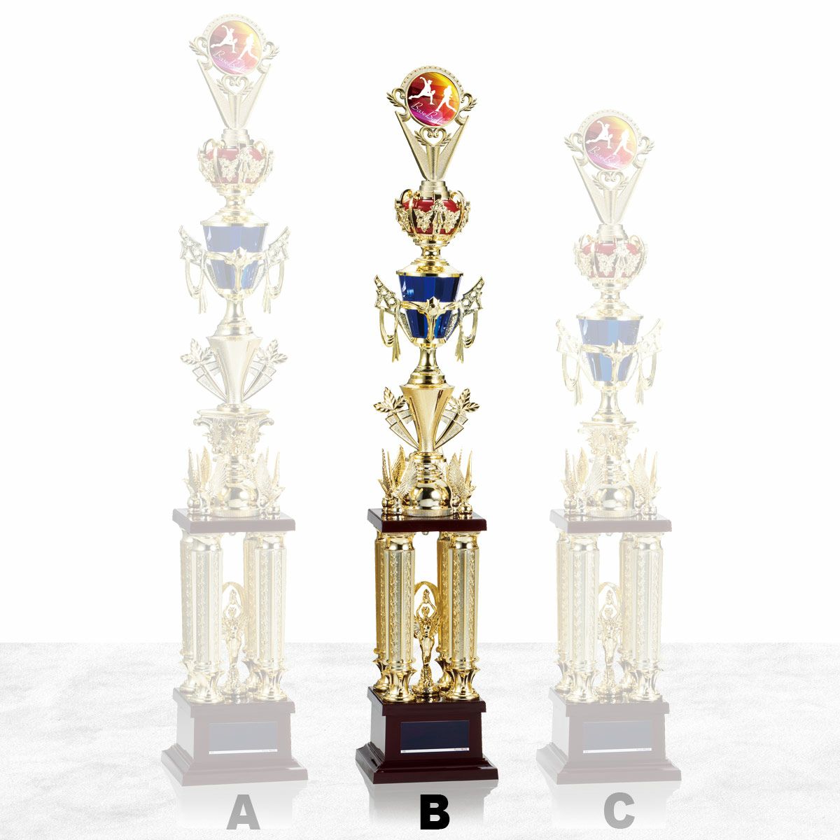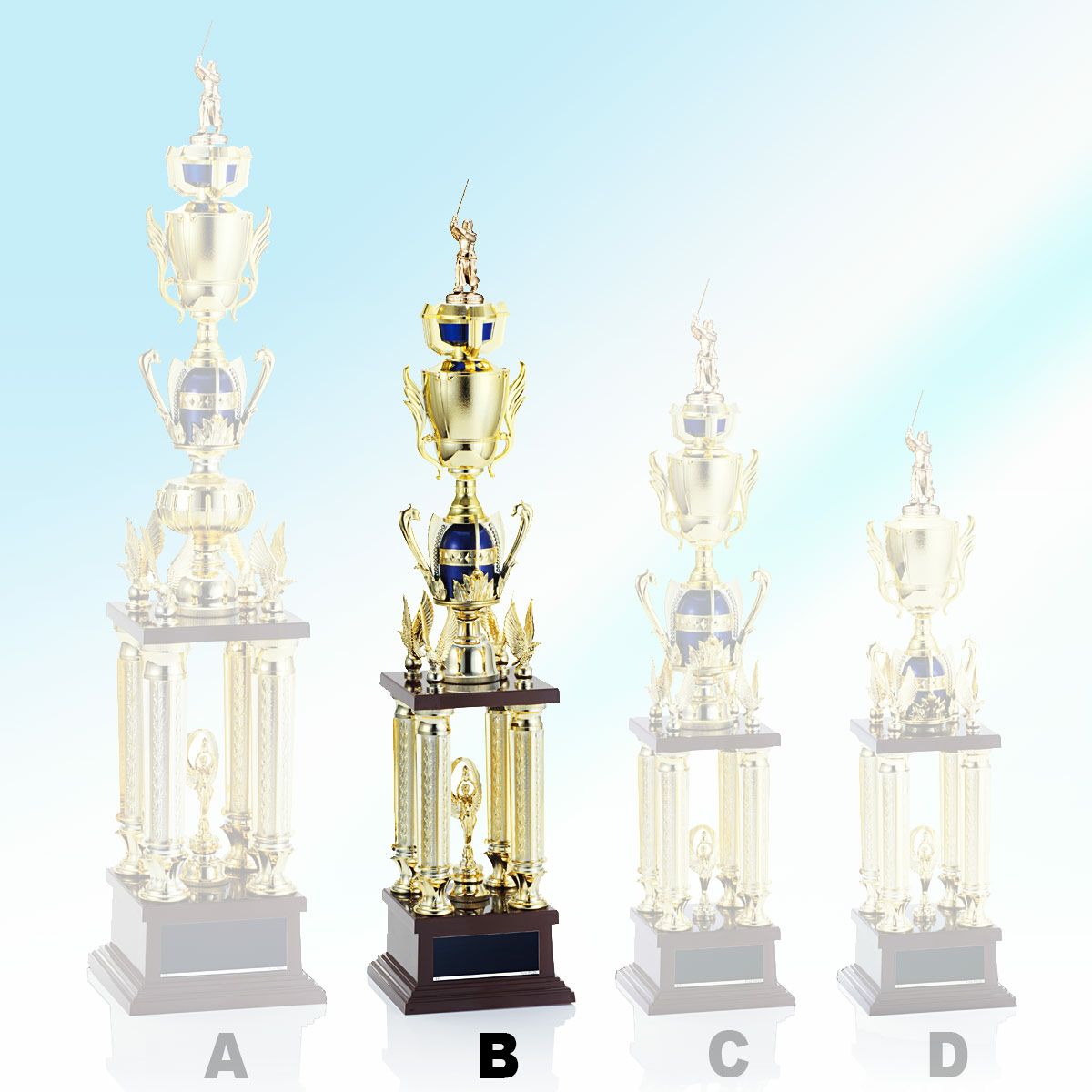抜群の存在感!4本柱(3本柱)の高さ1m前後のビッグなジャンボトロフィーを集めました。勝利の感動、至福の瞬間をトロフィー手にする人とともに。