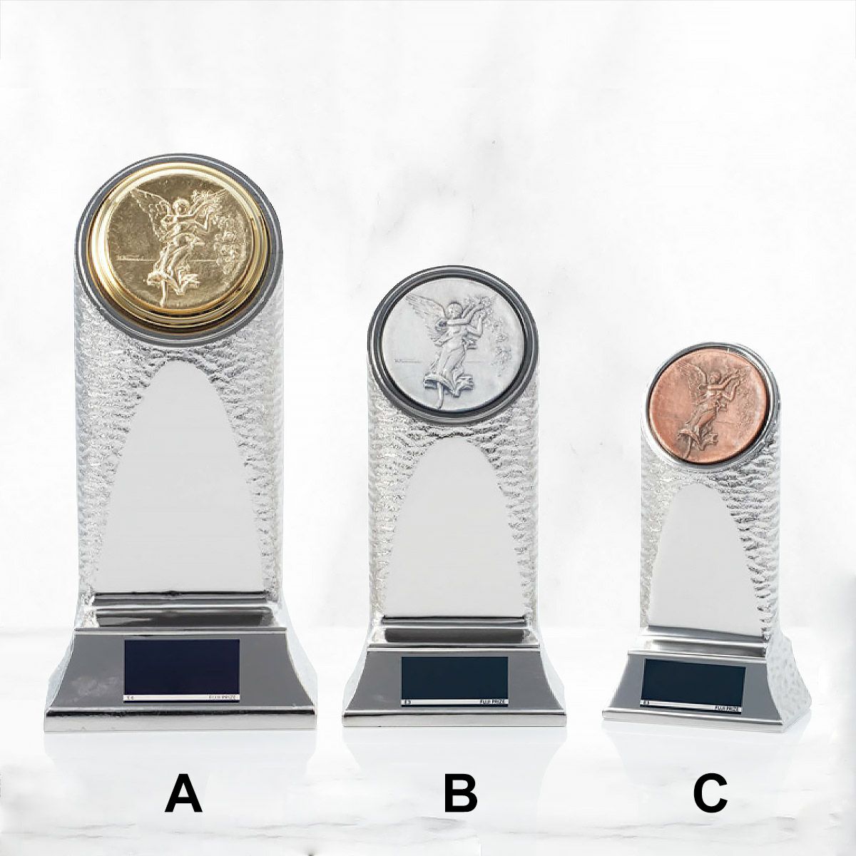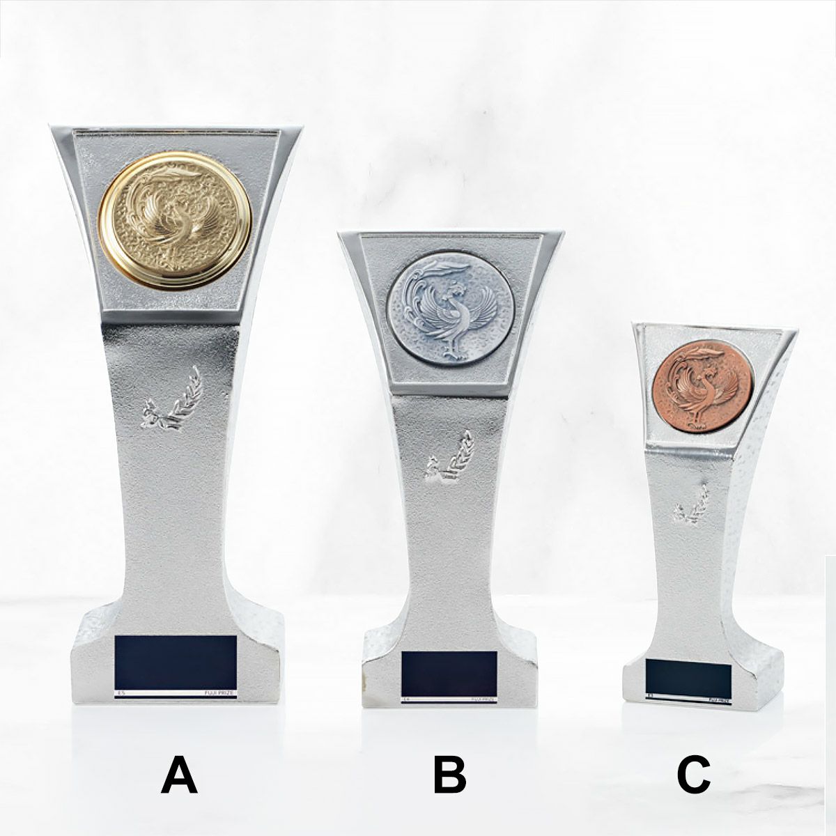 サイズは小さめですが落ち着いた雰囲気のキャスト(金属)製のトロフィーがブロンズトロフィーです。トップに人形が付いているトロフィーにはない形の、女神・鷲・ライオン・星・クラウン・聖火など、様々な形状があり、さらに金・銀・銅メッキがあるものもあります。書棚に入るような小さめのトロフィーを好まれる方にオススメです。