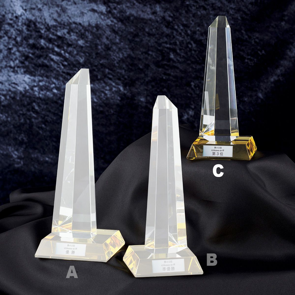 トロフィー全体がクリスタル製のもの天然石とクリスタルとの組み合わせなど、いずれの場合も重量感がありシンプルかつ美しく、人気のトロフィーとなっています。ご要望に合わせサイズや形状も豊富に取り揃えています。