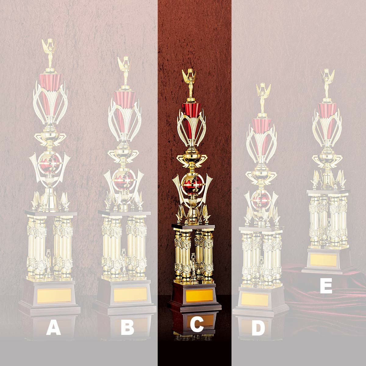 抜群の存在感!4本柱(3本柱)の高さ1m前後のビッグなジャンボトロフィーを集めました。勝利の感動、至福の瞬間をトロフィー手にする人とともに。