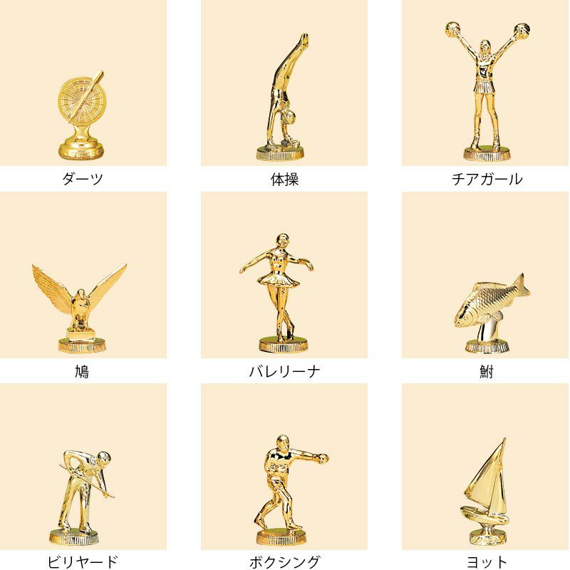- 品番にもよりますが、トロフィーの人形の種類は150種を超える競技種目をご用意しています。人形の選択はご希望のトロフィーの品番をクリックし、商品ページへ進んででいただければ、そちらのページでご案内させていただいております。