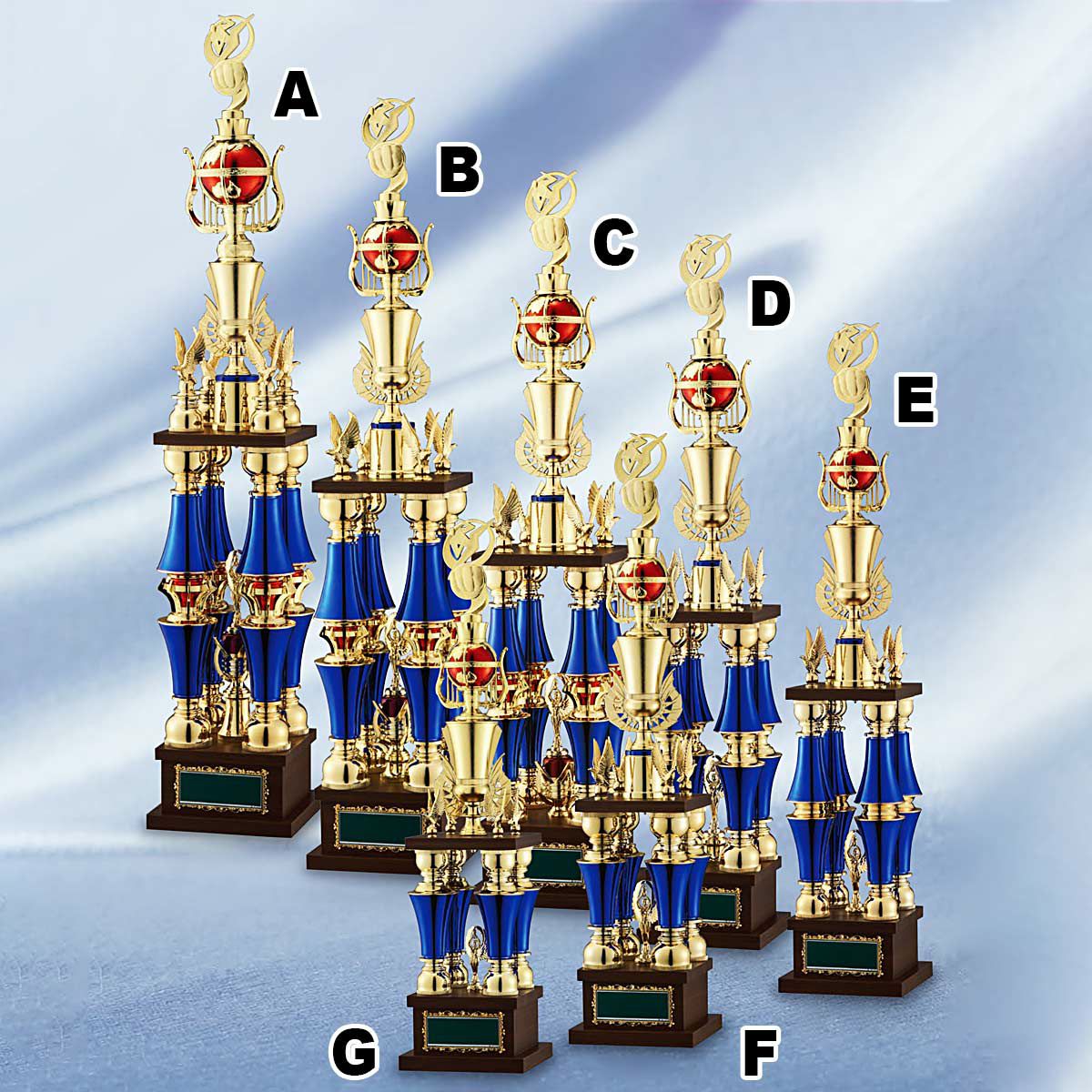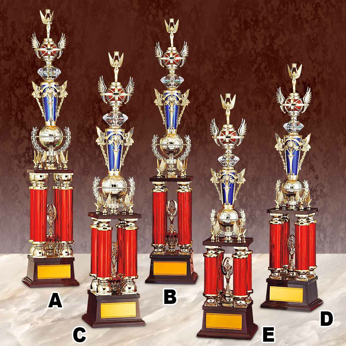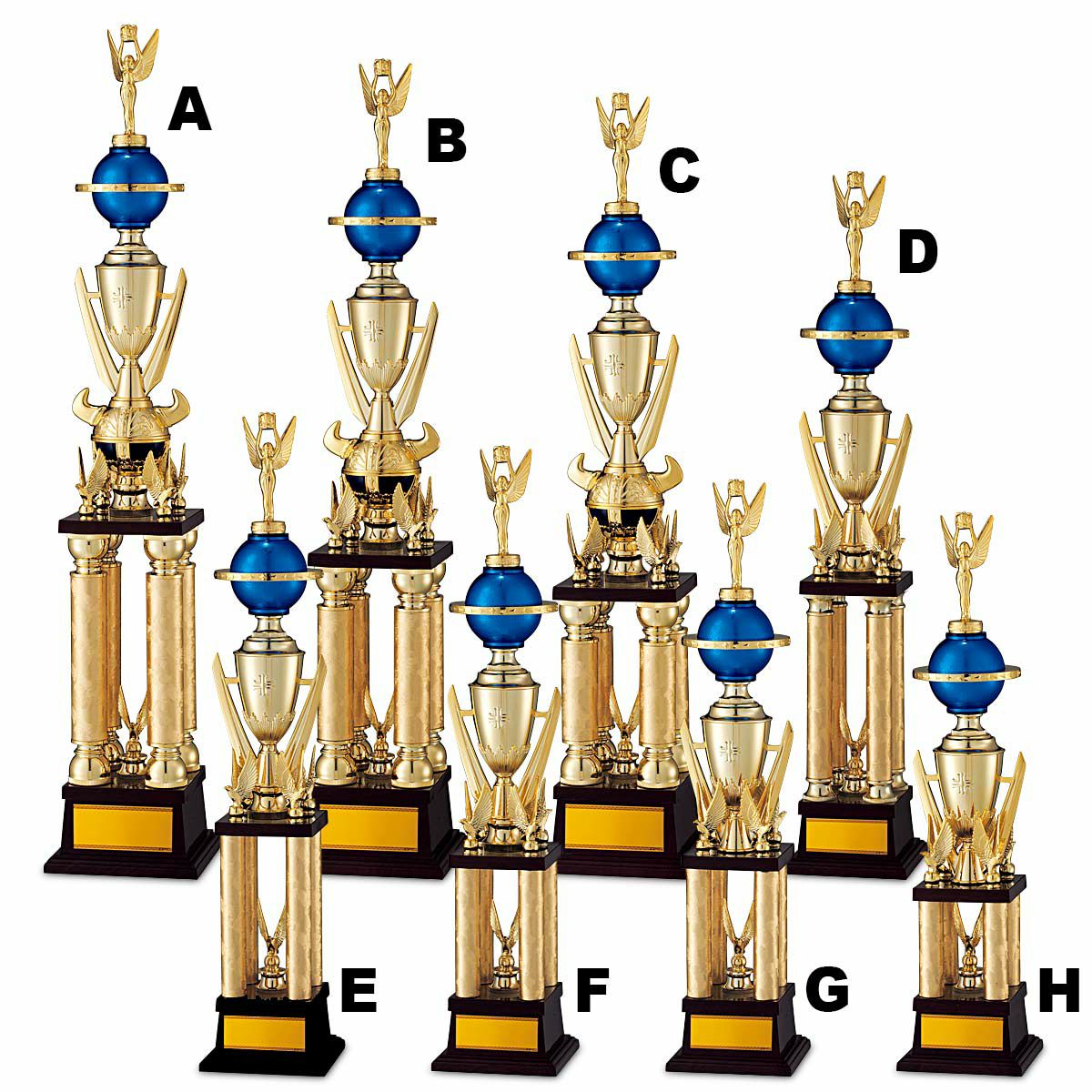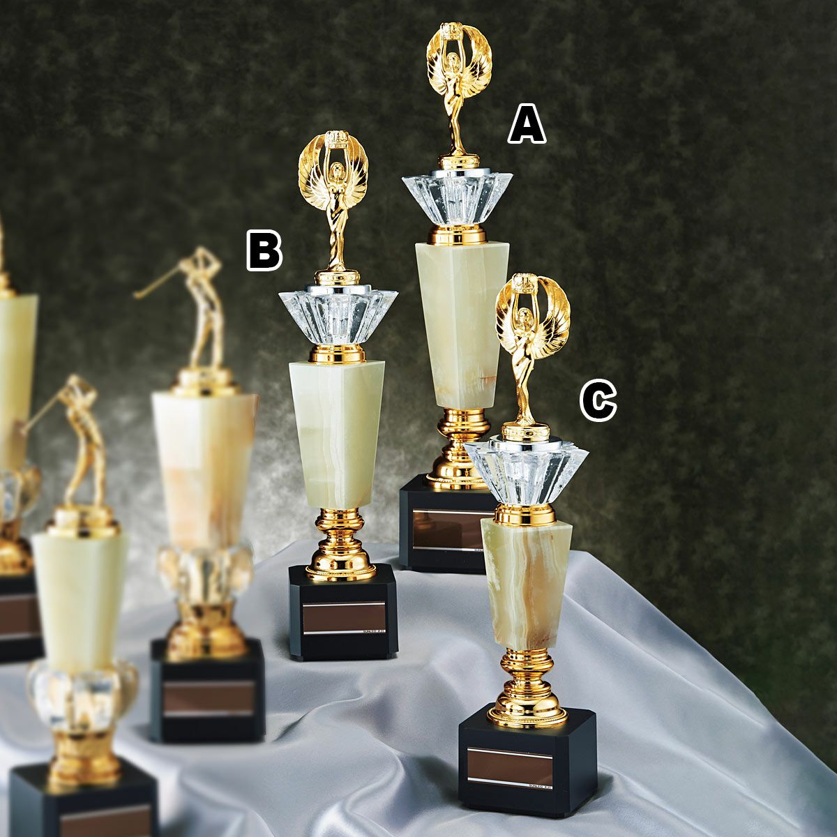 抜群の存在感!4本柱(3本柱)の高さ1m前後のビッグなジャンボトロフィーを集めました。勝利の感動、至福の瞬間をトロフィー手にする人とともに。