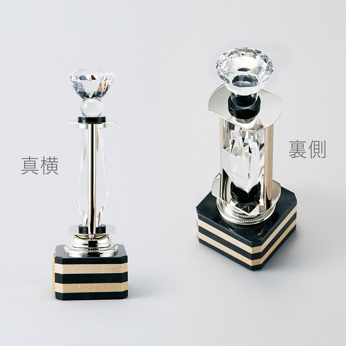 - 際立つ透明感で一際目を引く材質のクリスタル製トロフィー。