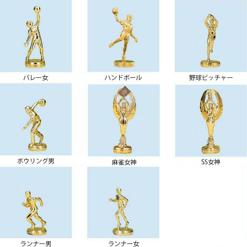 - 品番にもよりますが、トロフィーの人形の種類は150種を超える競技種目をご用意しています。人形の選択はご希望のトロフィーの品番をクリックし、商品ページへ進んででいただければ、そちらのページでご案内させていただいております。