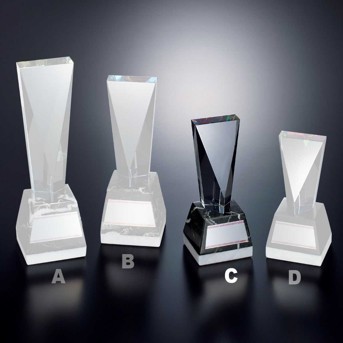 トロフィー全体がクリスタル製のもの天然石とクリスタルとの組み合わせなど、いずれの場合も重量感がありシンプルかつ美しく、人気のトロフィーとなっています。ご要望に合わせサイズや形状も豊富に取り揃えています。