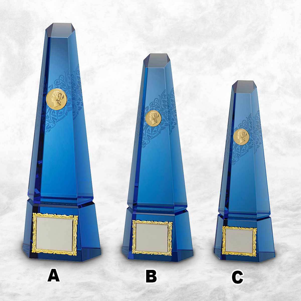 トロフィー全体がクリスタル製のもの天然石とクリスタルとの組み合わせなど、いずれの場合も重量感がありシンプルかつ美しく、人気のトロフィーとなっています。ご要望に合わせサイズや形状も豊富に取り揃えています。
