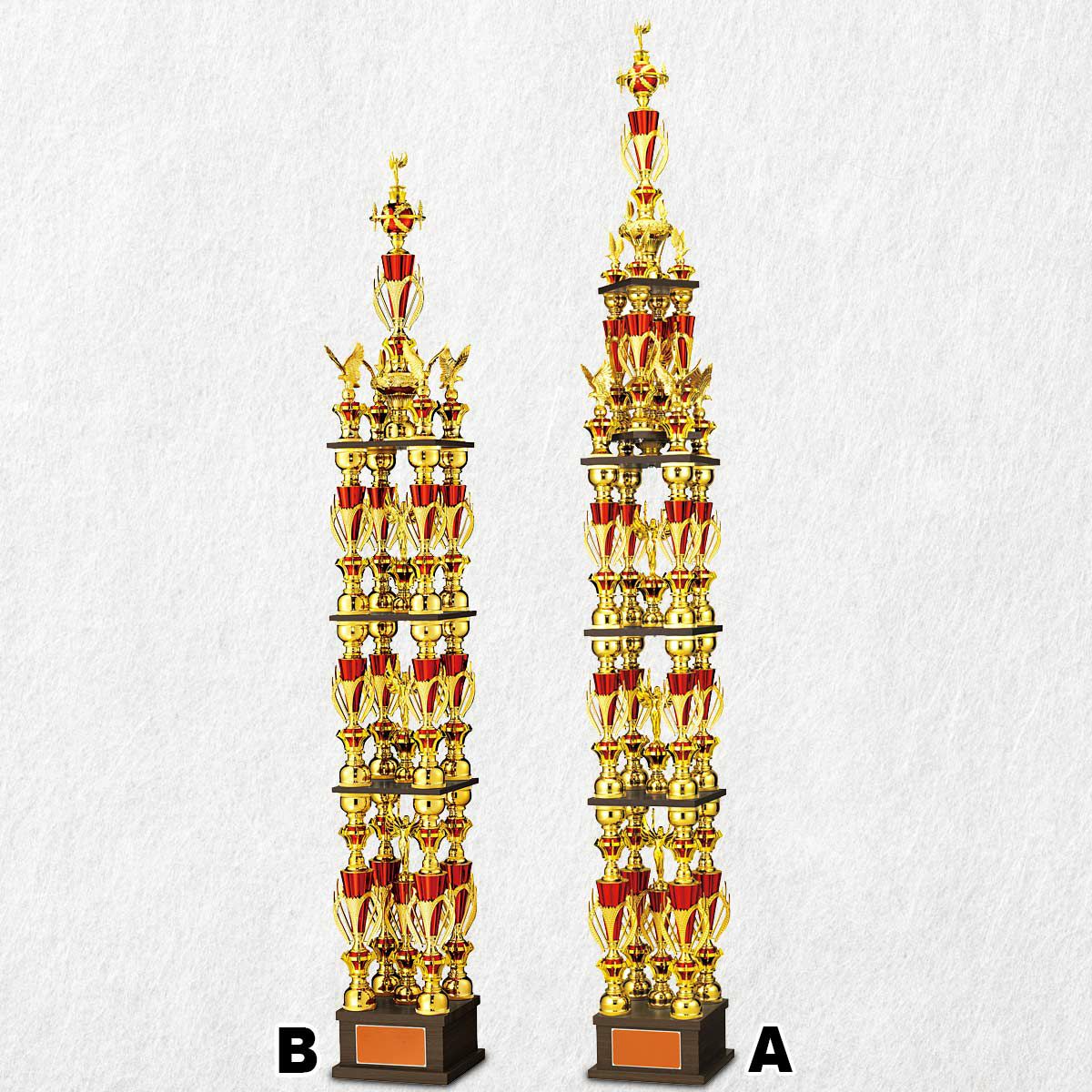 抜群の存在感!4本柱(3本柱)の高さ1m前後のビッグなジャンボトロフィーを集めました。勝利の感動、至福の瞬間をトロフィー手にする人とともに。
